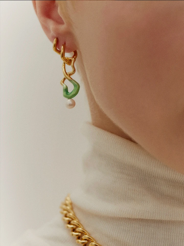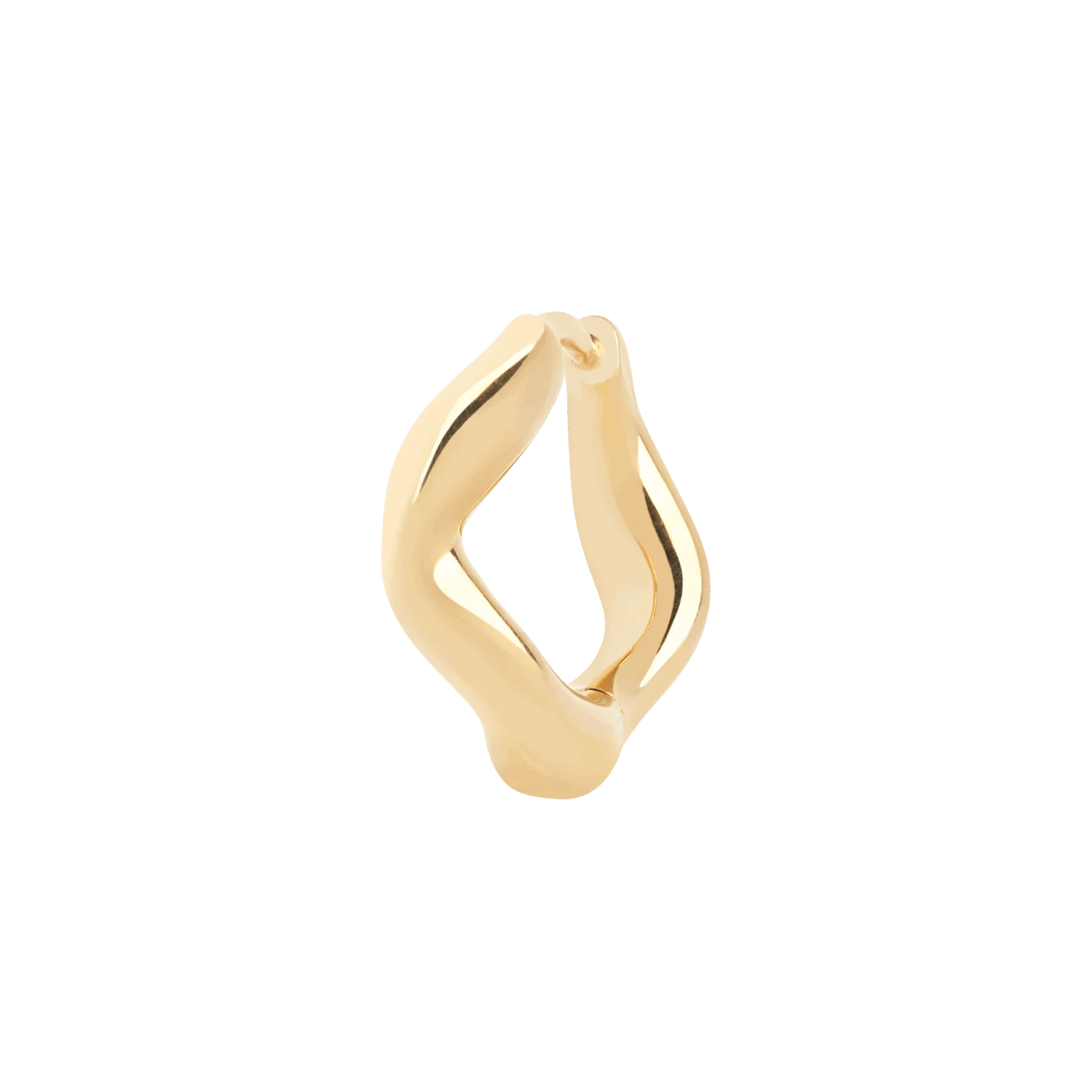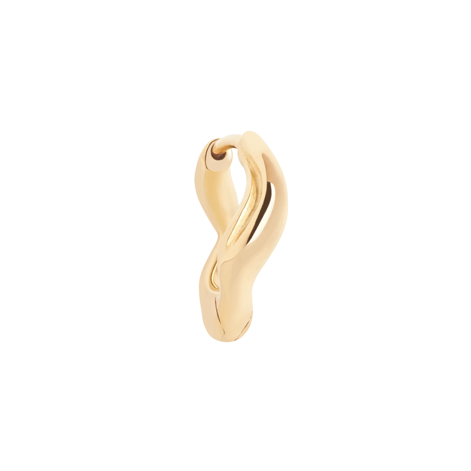 Anil is a wavy and versatile huggie. Also available in smaller sizes. Wear it alone or stack it with different sizes up the ear.