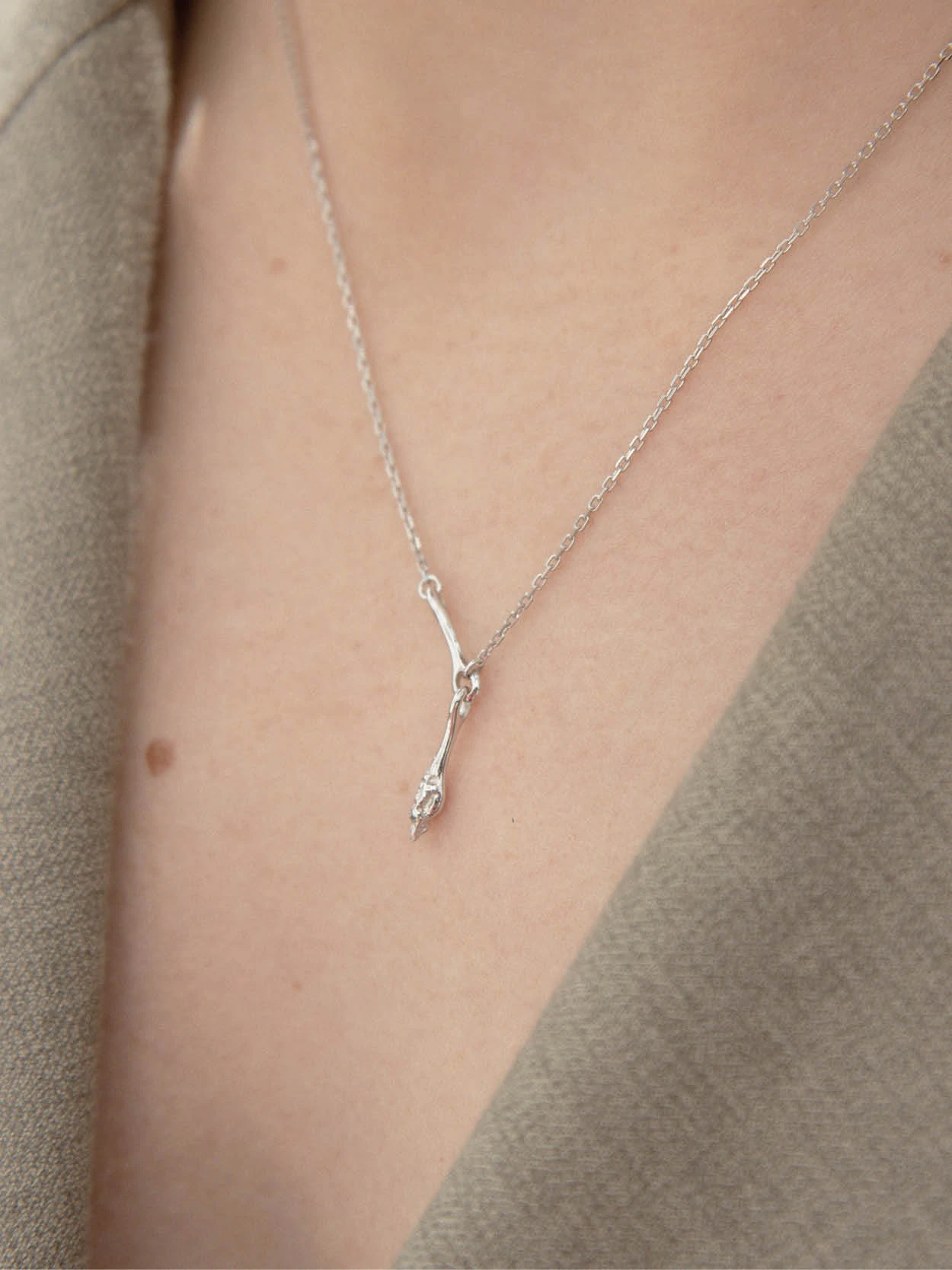 Carrion is a thin adjustable necklace that features an eroded bone link detail.