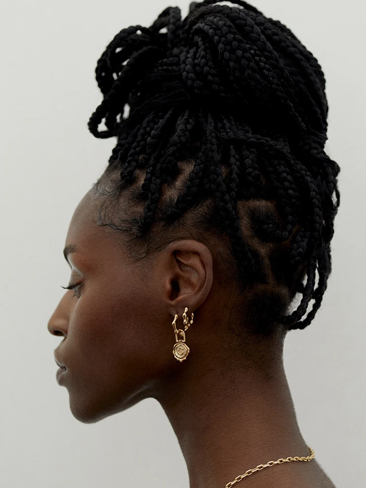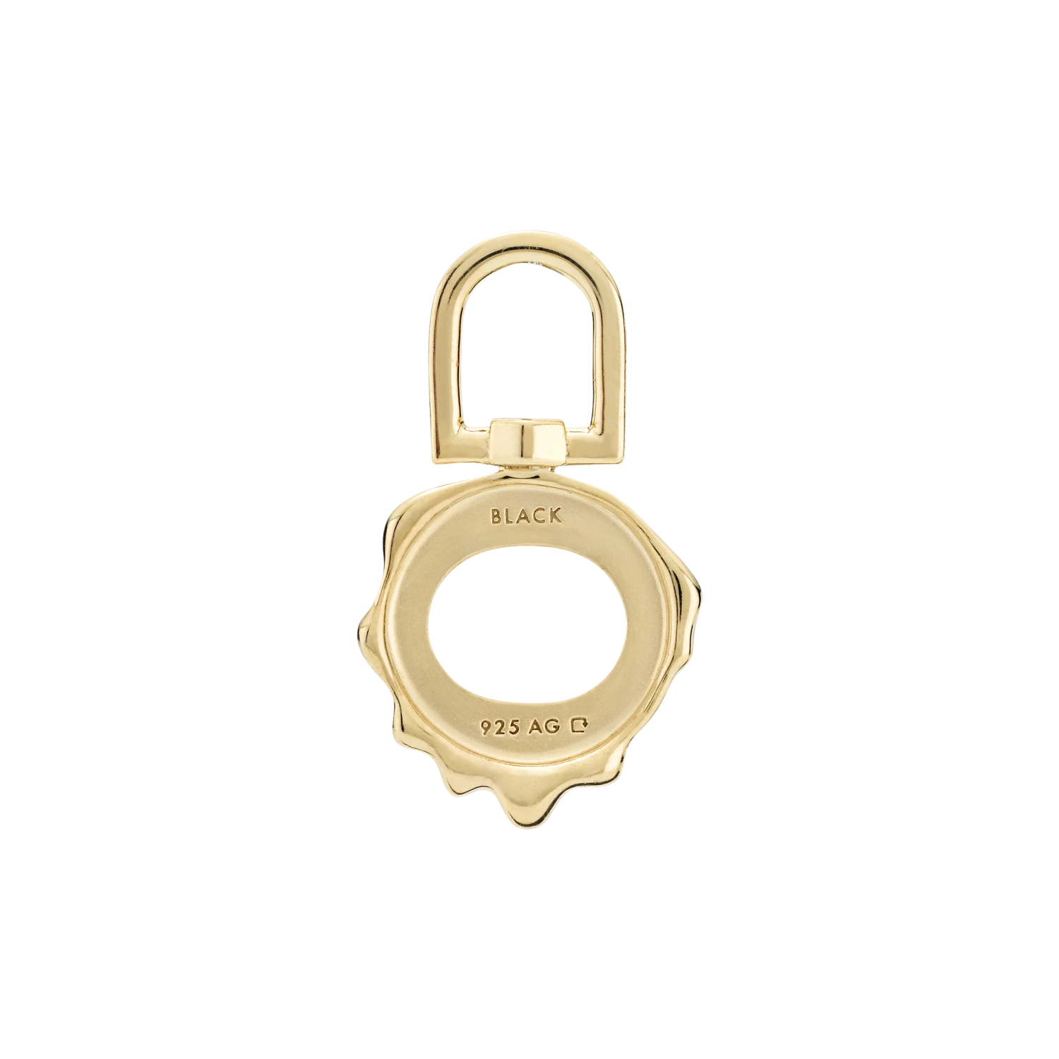 The charm, Eaton, with a carabiner top detail, is made to be used on earrings.