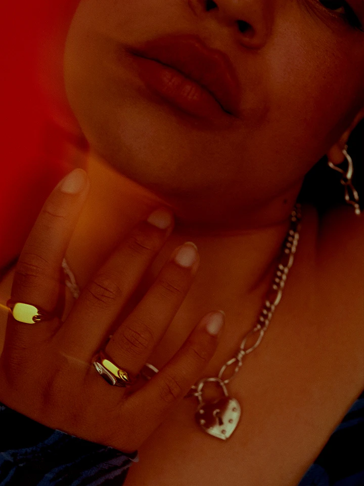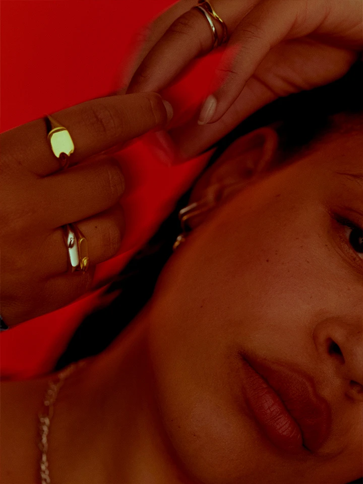 The Edan ring is a timeless yet modern signet ring with a molten detail on one of the sides that beautifully contrasts, yet compliments the clean aesthetics of the otherwise classic signet design.