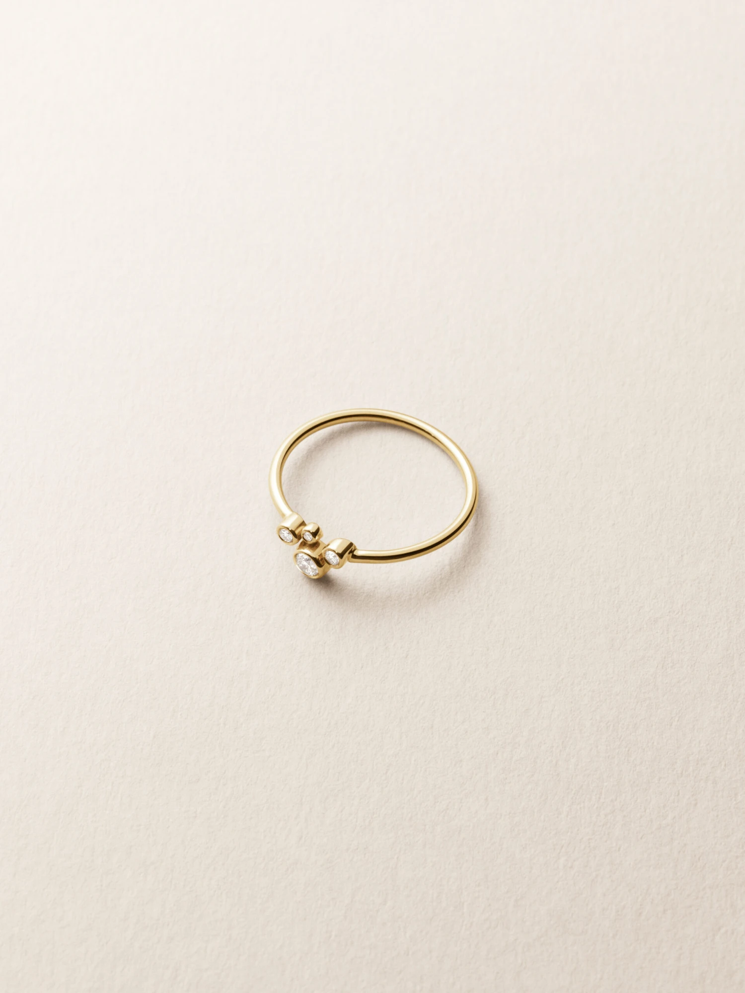 Stones: 1 x 2,5 mm. Lab-grown diamonds / 2 x 1,5 mm. Lab-grown diamond / 1 x 1 mm. Lab-grown diamond