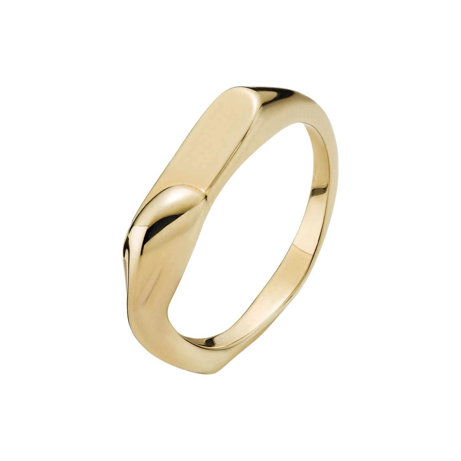 Details mimicking the idea of a melting metal beautifully contrast and compliment the clean aesthetics of the classic signet and leaves room for a small engraving.