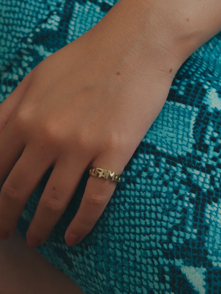 The Family Ring is the ultimate symbol of love. It represents the joy of being part of a family, but it also symbolizes the relationship your self-picked family. Use the ring on its own as a statement, or create a cool stacking with other rings.