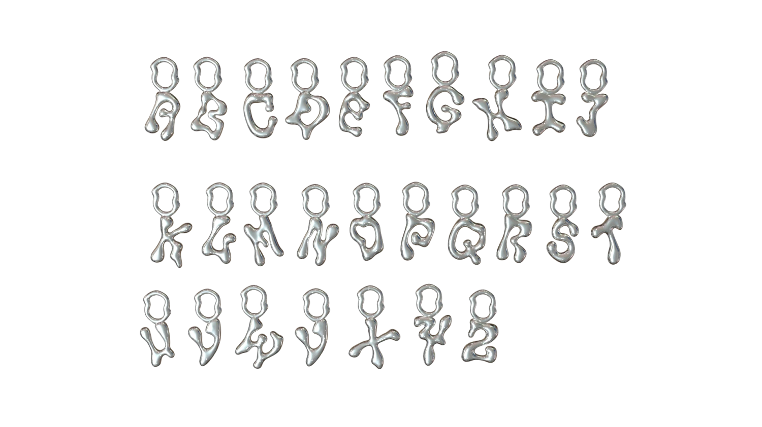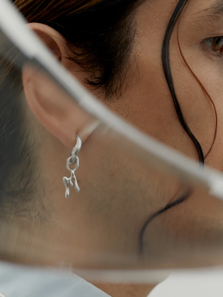 Fluent is our “wavy” take on the letter charm. It can be used on huggies or attached on chains using our charm clasp.