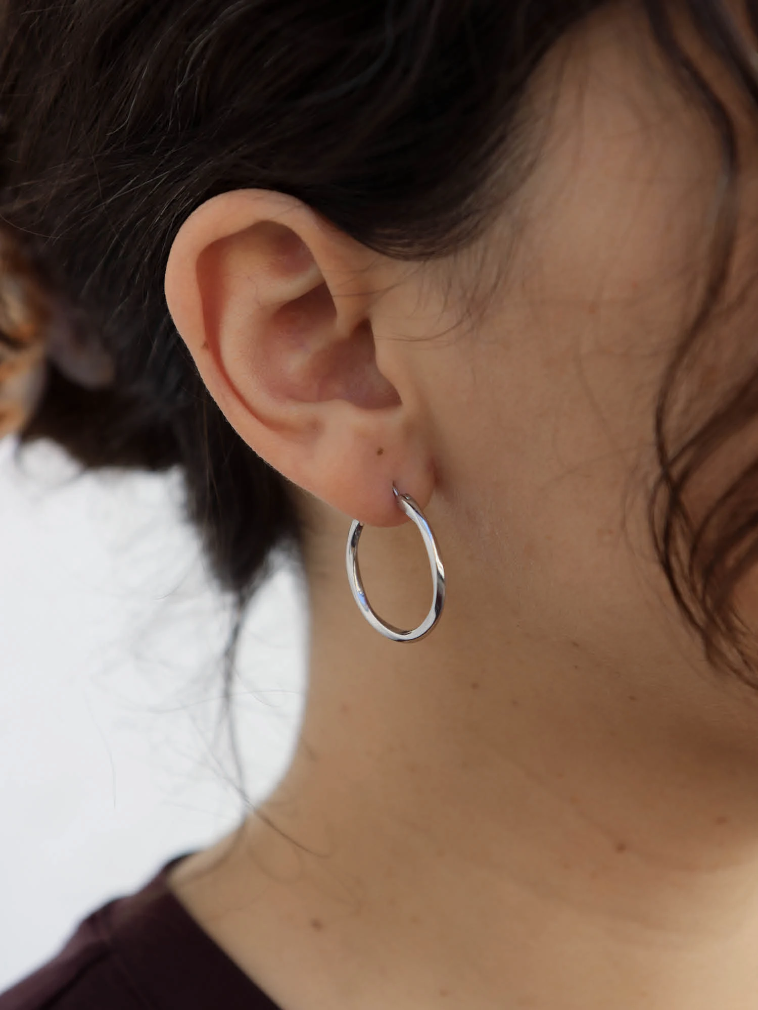 With its twisted design this is not your ordinary hoop. Right now we absolutely love to style this piece with different sized hoop earrings in one ear.