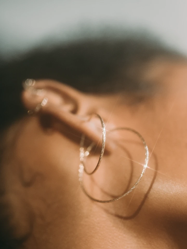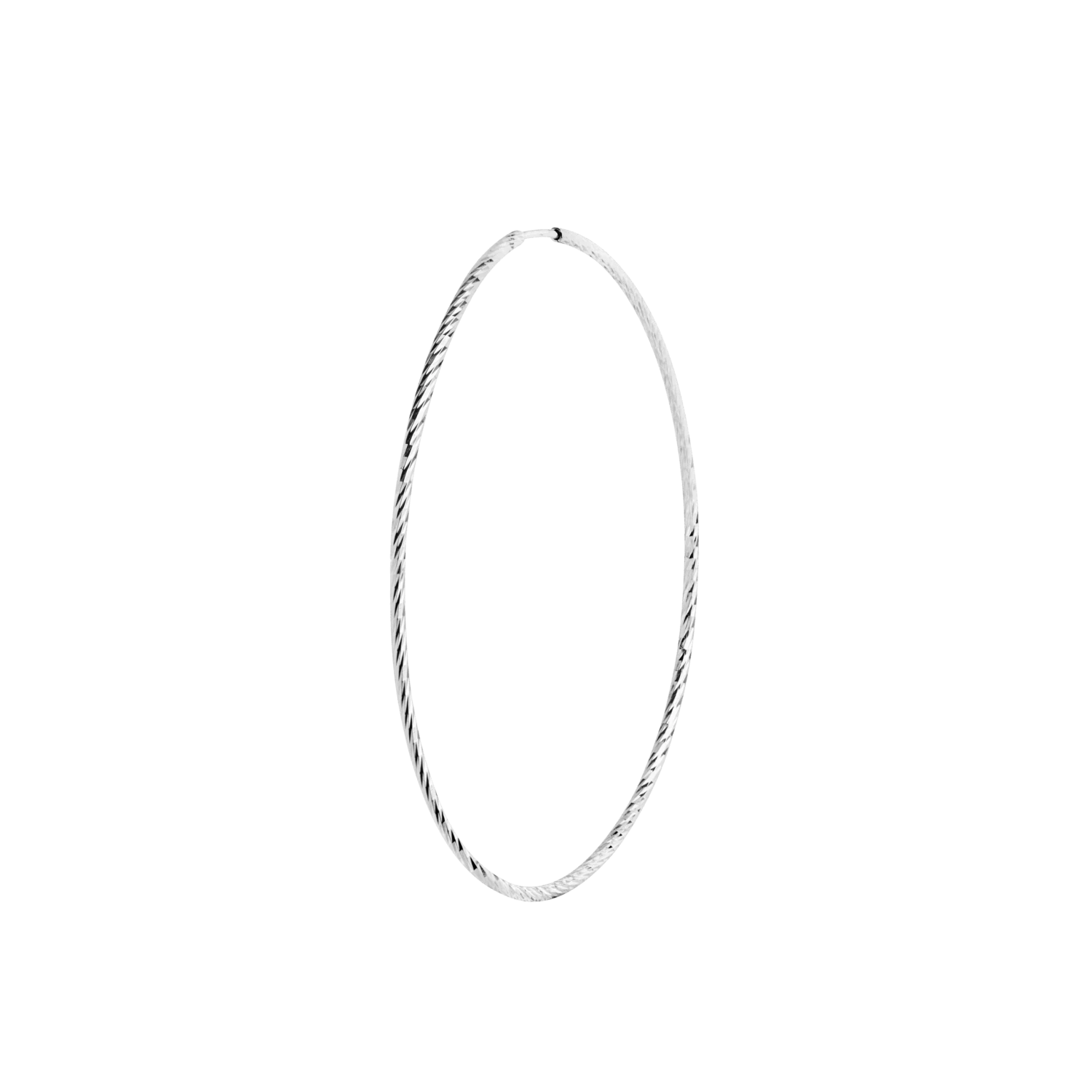 A slim hoop – made to last. This design is made with our unique flexible diamond cut tube. The small opening gap makes this hoop look even more elegant when worn.