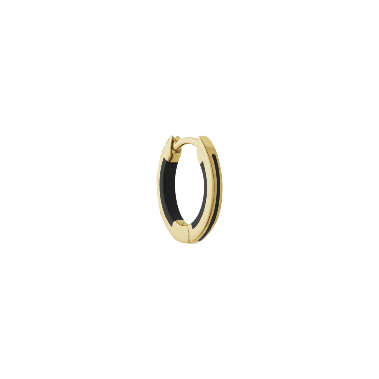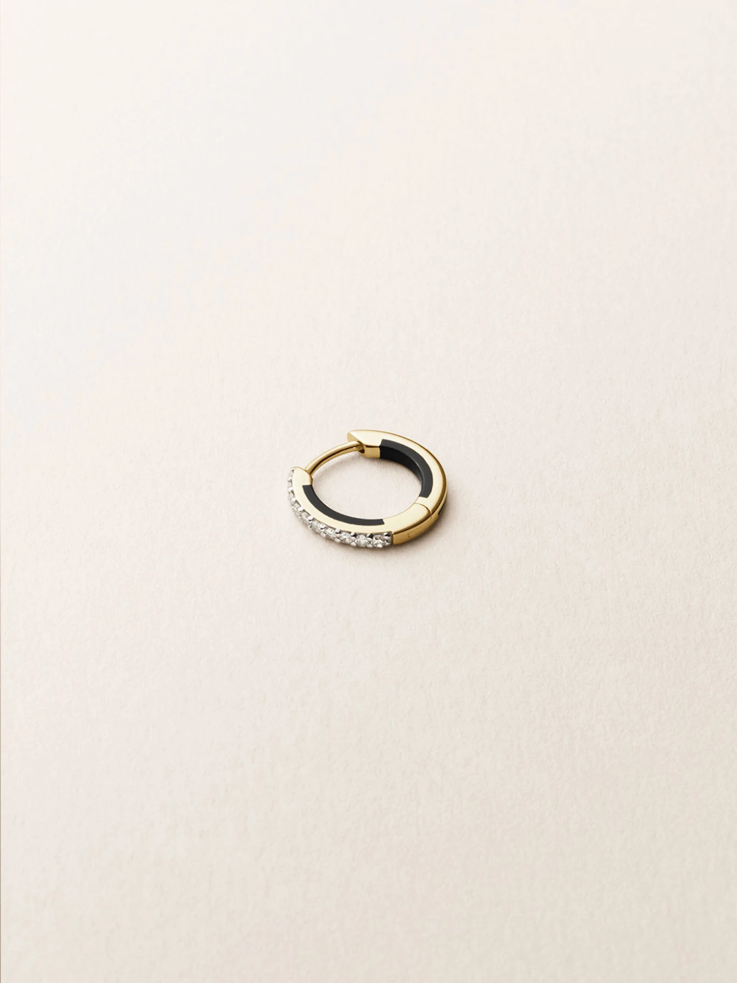 Our Lost Highway Huggie has a classic yet modern expression. The different colors and diamond settings makes them perfect for stacking and to mix and match. Besides the discrete black ceramic detail on the inside, a thin black ceramic line is found on the back as a reference to the movie Lost Highway. Also available in larger sizes.