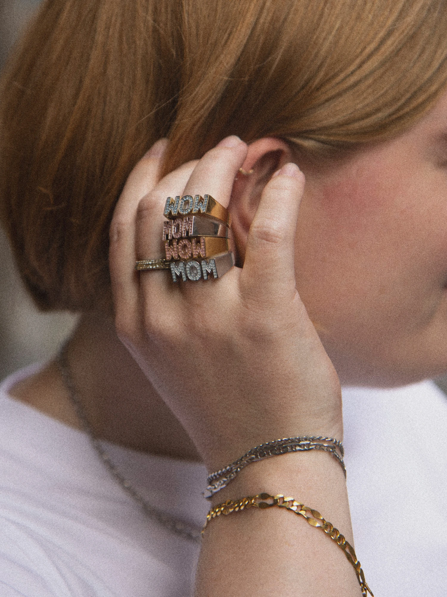 One of our all time most iconic styles – the original MOM ring – now comes in a limited edition design, enriched with nano stones in the shade SKY. For all the moms, mothers, mommas, and mother entities. out there – you are epic, and we salute you.