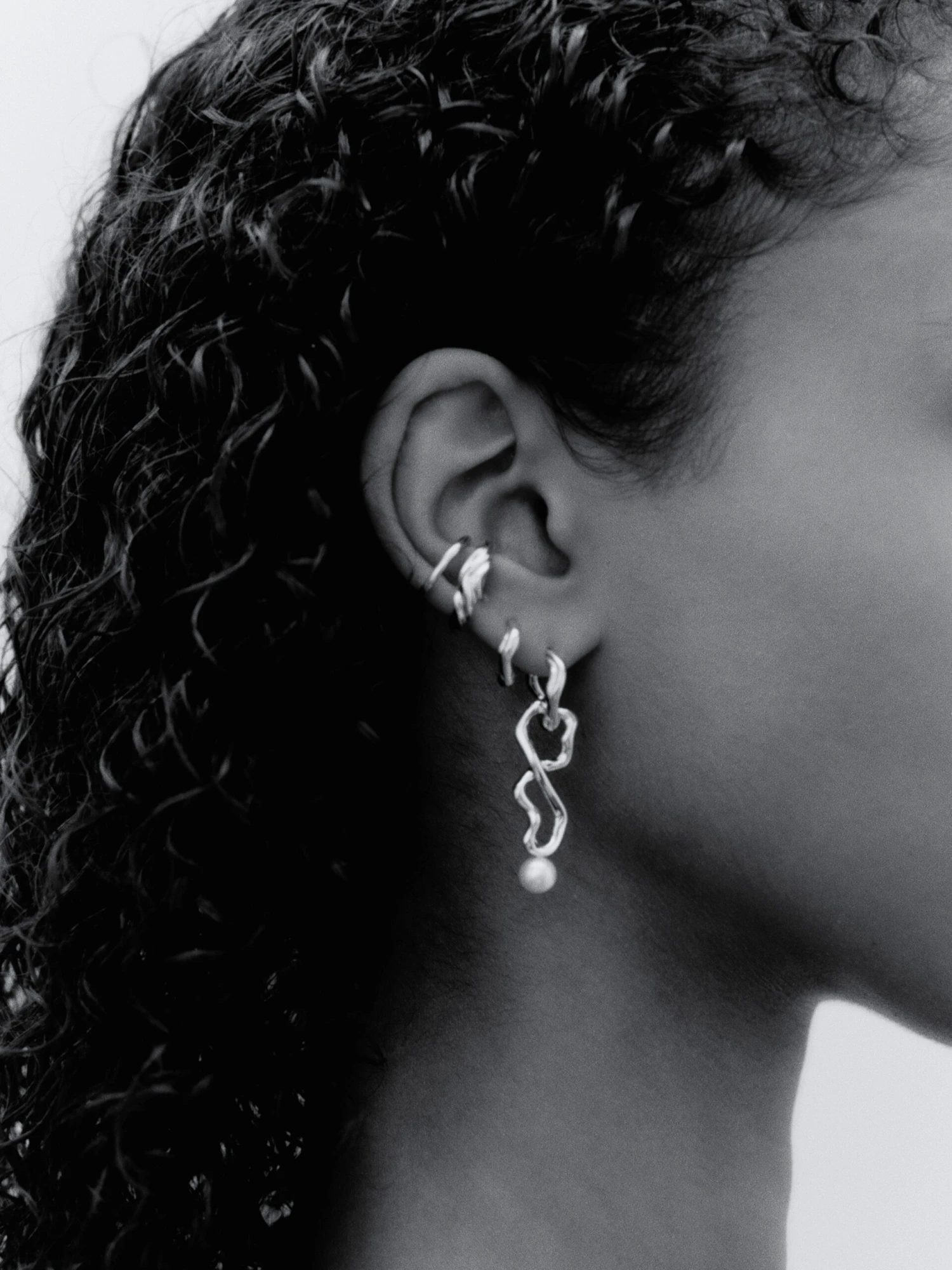 Rai is a cool statement ear cuff with a clean and a textured ring. Also available in a version covered in opal glitter resin. This earcuff only comes to the right ear.