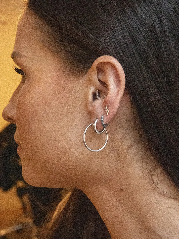 If you’re looking for that classic and understated elegance, you cannot go wrong with a pair of classical hoops. Want a bit more fun? Add a charm to your hoops. And if you’re feeling even more adventurous stack them with hoops in other sizes.