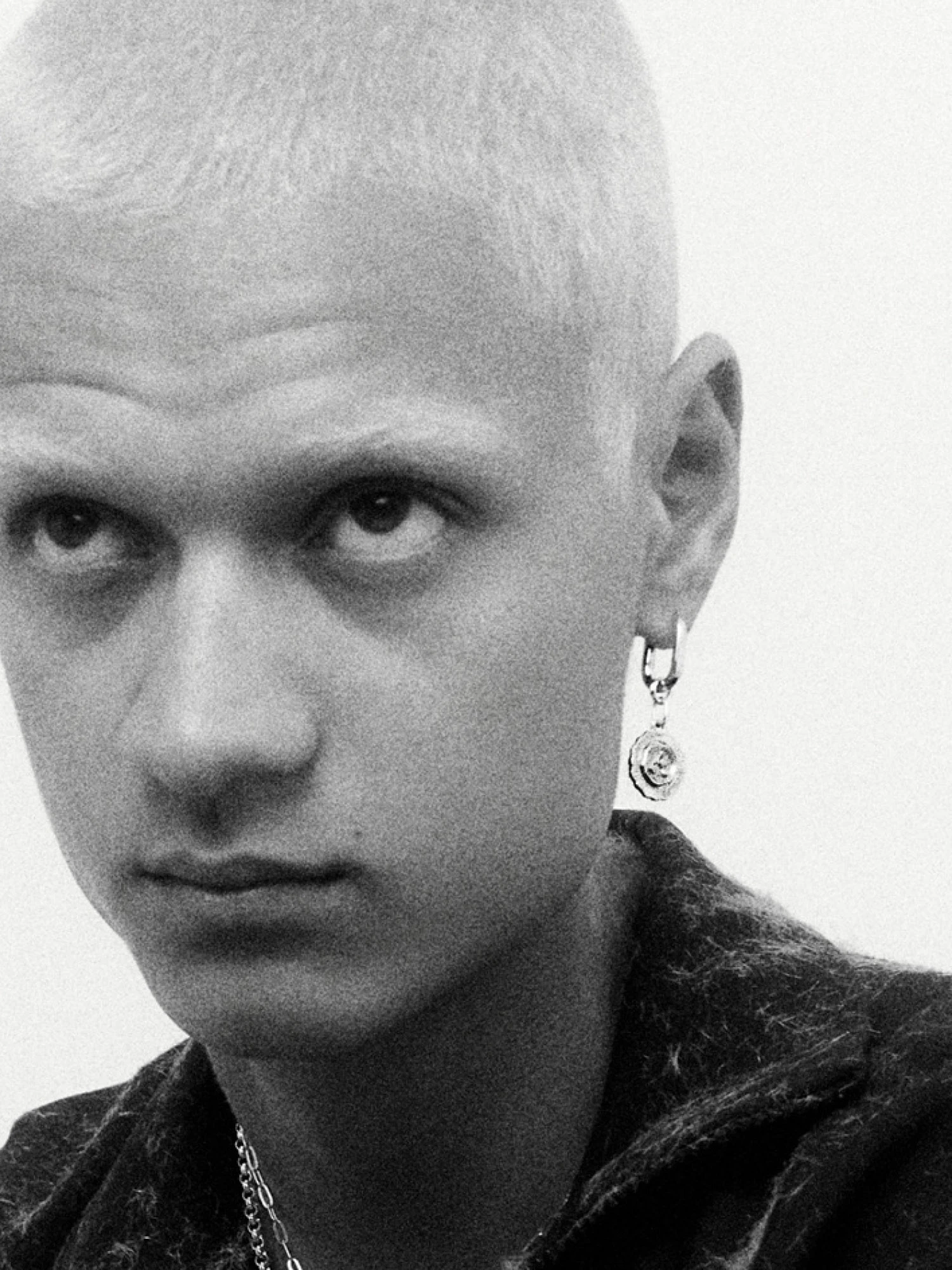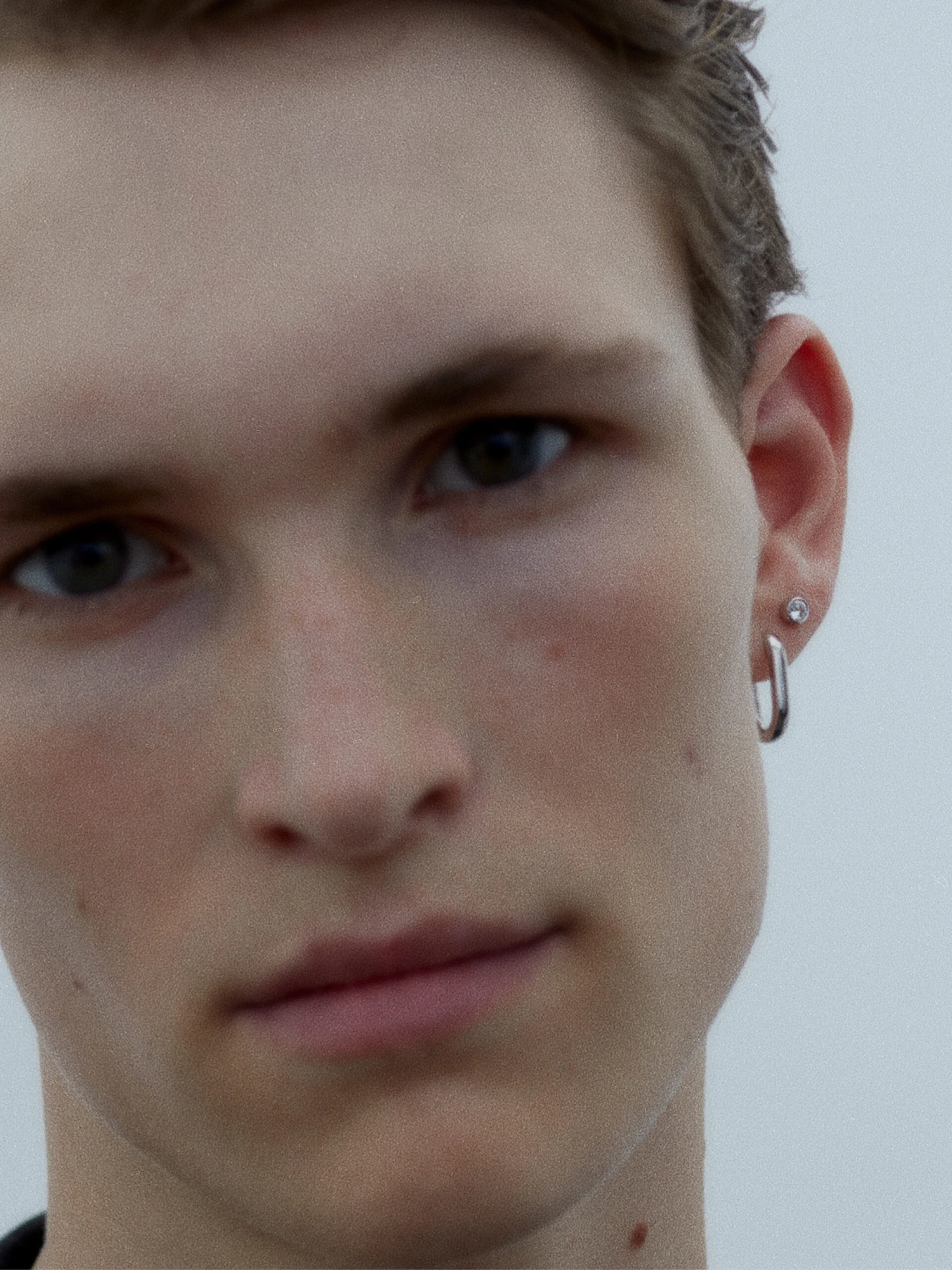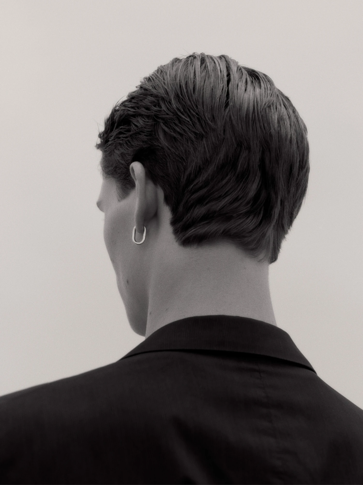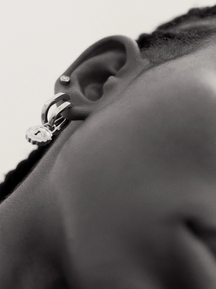 The monochrome colour palette continues with the creation of our geometrically shaped huggie Slick.