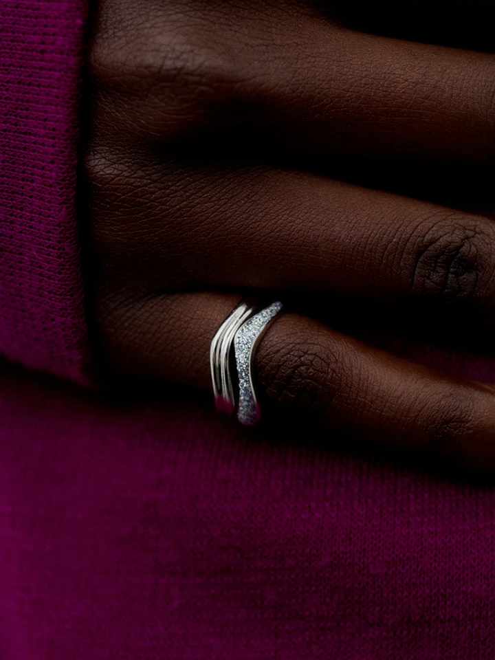 A simple wavy ring. Use alone or stack it up with Vayu and Aura rings.
