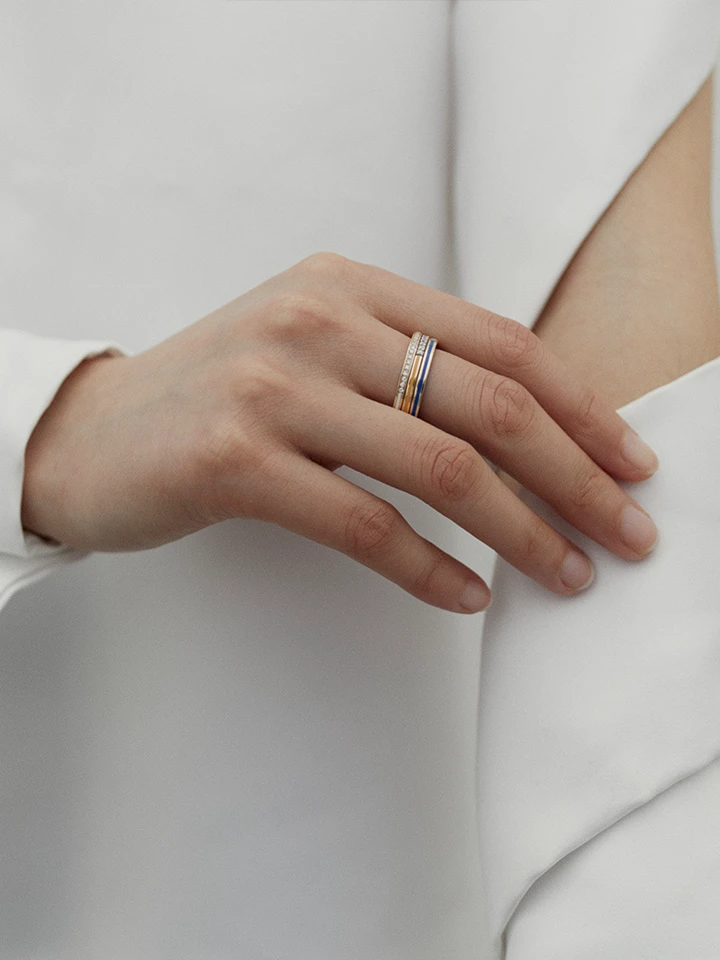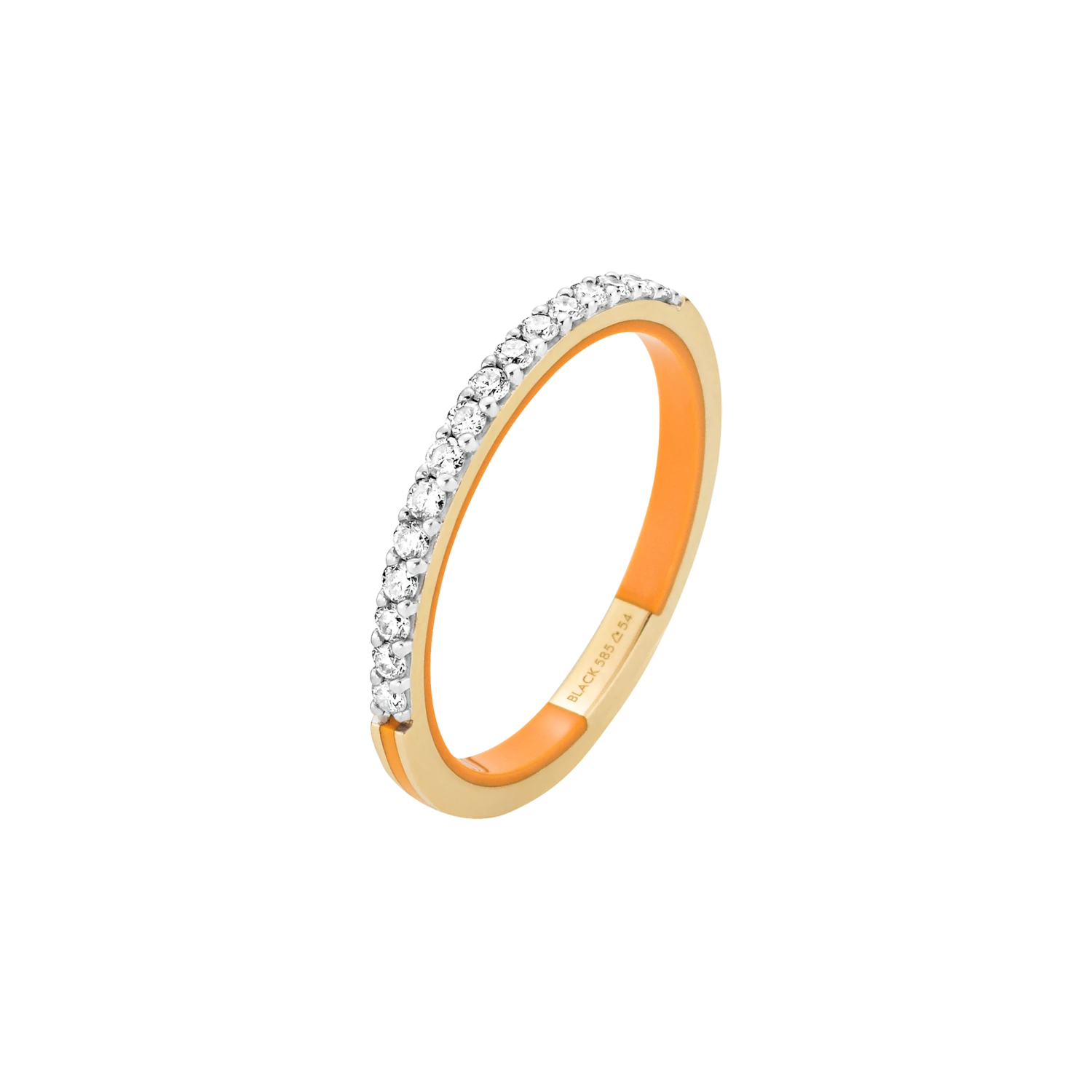 The orange, scratch-proff ceramic on the inside of the ring and the detail on the back of the outer ring shank adds a unique look to the piece.