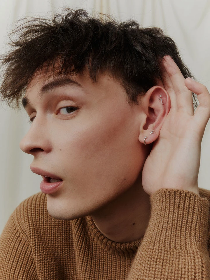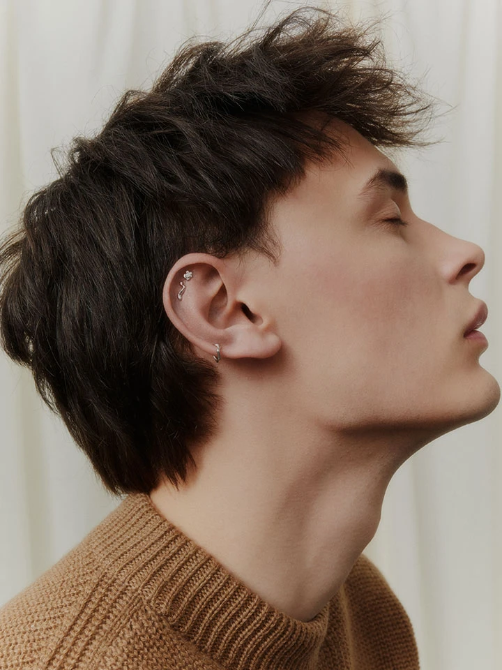If “minimalistic yet unique” describes your style, you’ll love the Twig piercing stud. Its twisted, fluid shape makes it the perfect piece for a look that’s simple, but not *too* simple.