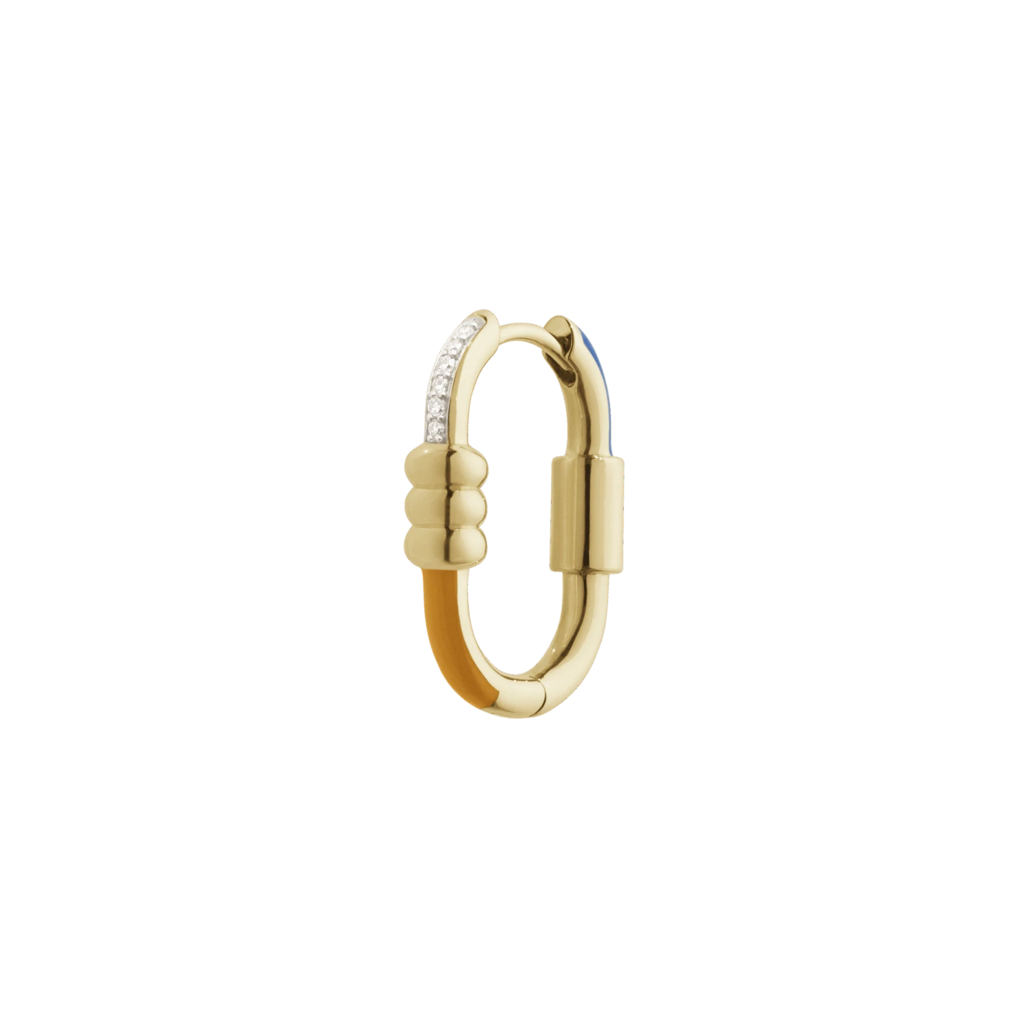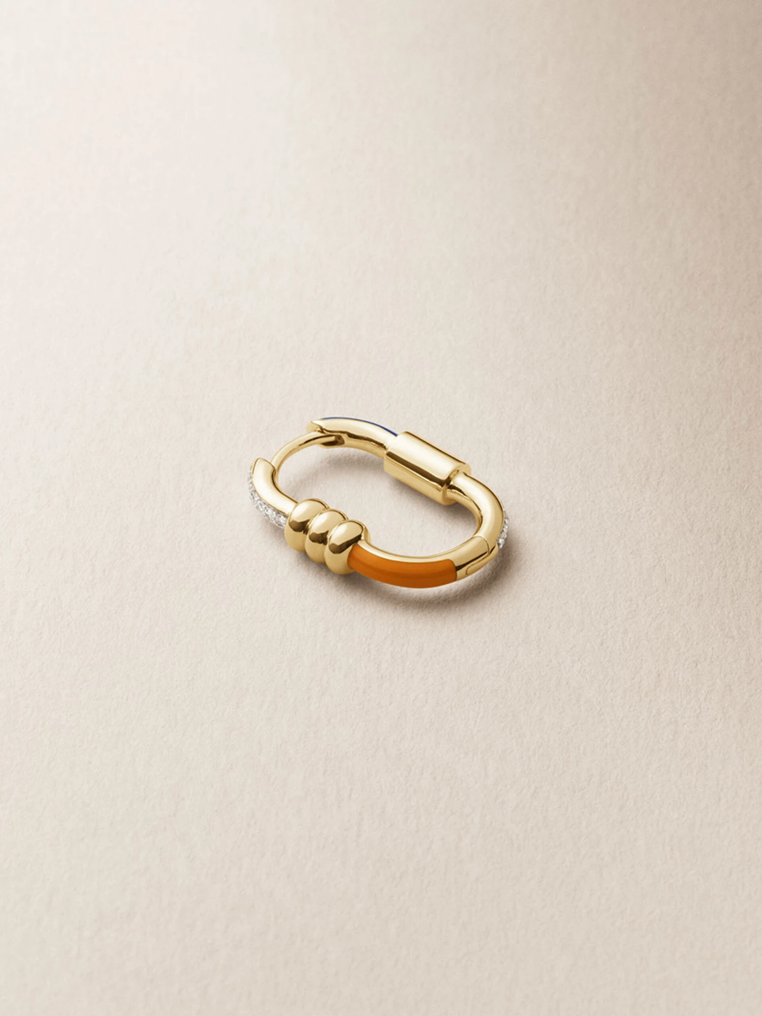 Our signature Vertigo earrings are instant icon pieces designed to be reversible; an everyday go-to with the attitude of a statement earring. Just like the Vertigo lock it represents our take on the classic carabiner hook. Also available in a larger size and with or without ceramic and diamond details.