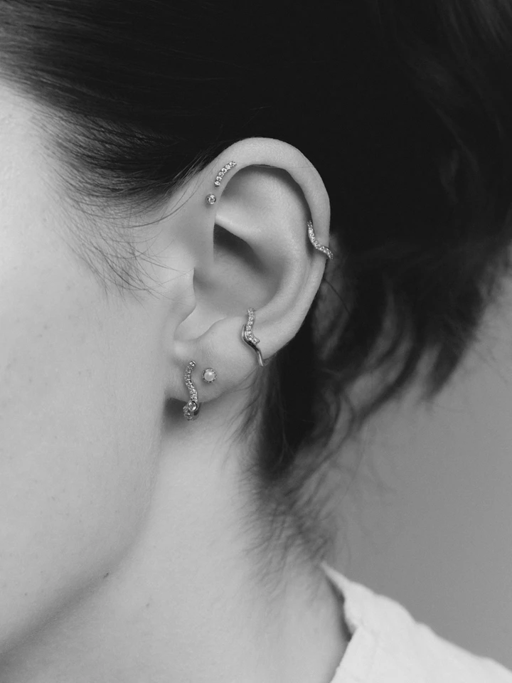 Style your existing piercings with huggies from our piercing collection. Perfect for your earlobe and upper ear cartilage as it follows the shape of your ear. And did we mention the diamonds?