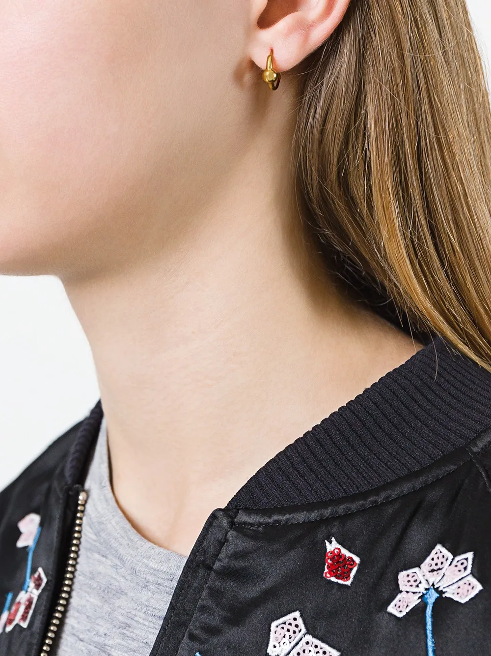 Gold plated sterling silver ‘Hoop’ earring from Maria Black featuring a ball in the centre. This is a single earring. Please order a quantity of 2 for a pair.