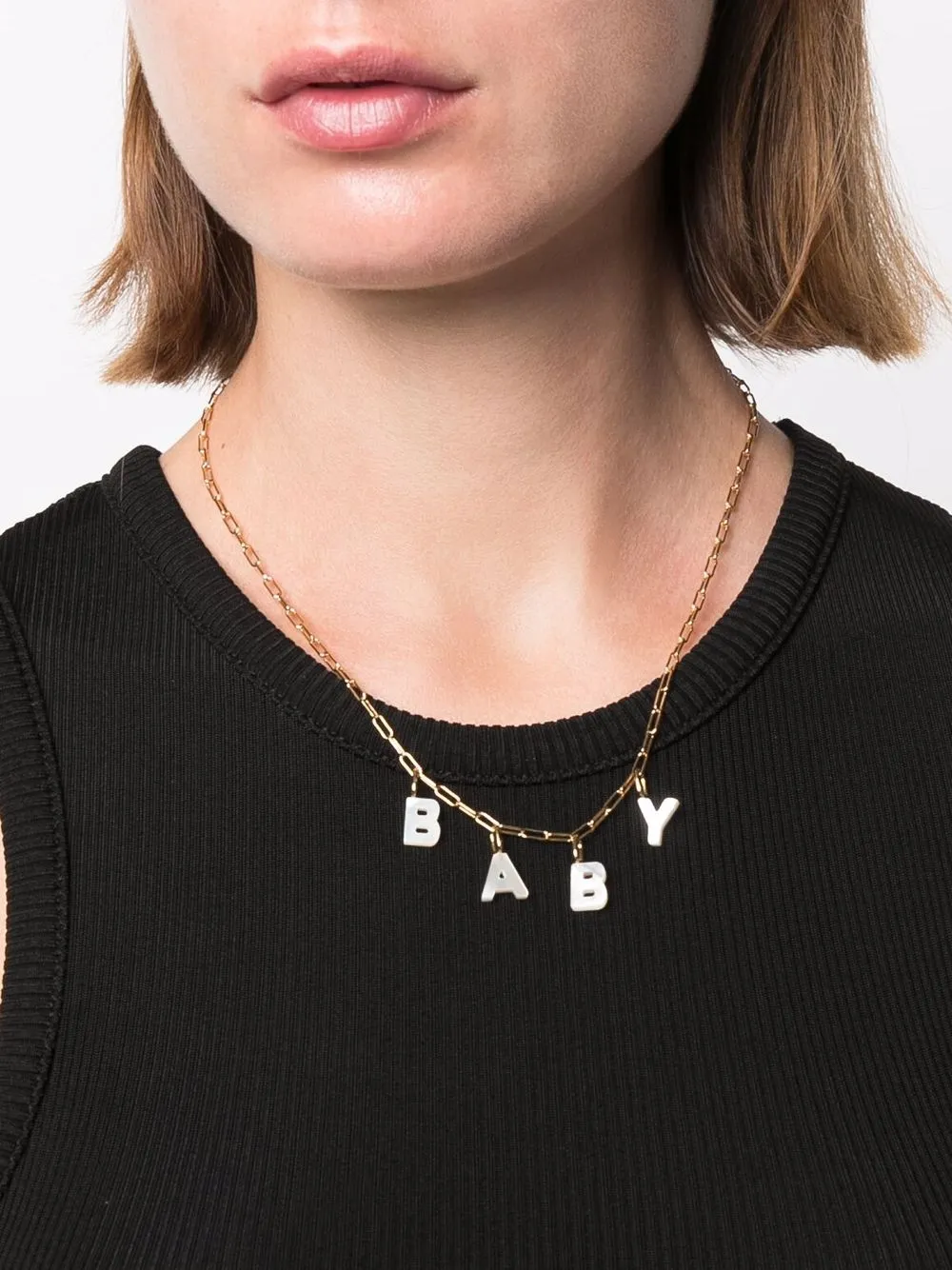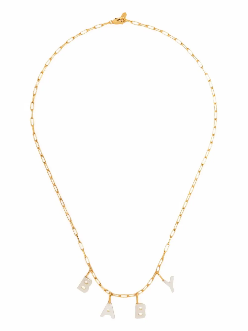 Gold-tone gold plated sterling silver Baby mother-of-pearl lettering necklace from MARIA BLACK featuring gold plated, sterling silver, mother-of-pearl, letter pendant, figaro-link chain, adjustable fit and lobster claw fastening.