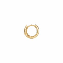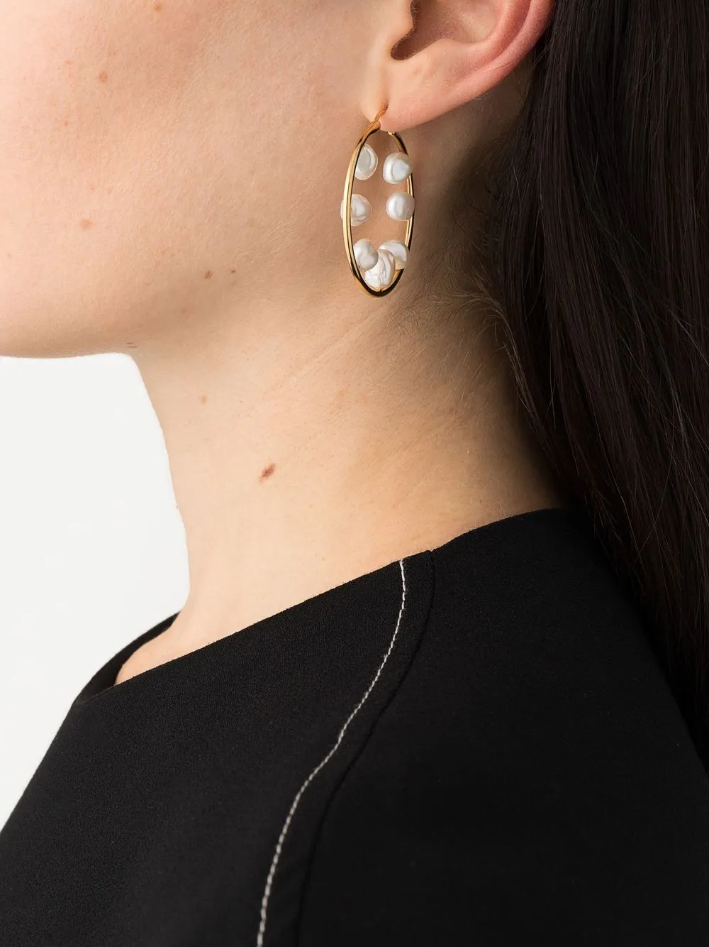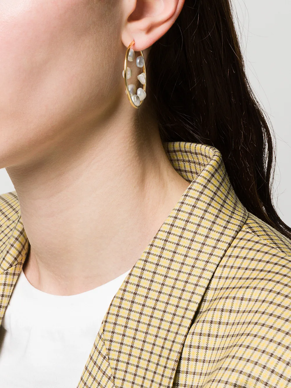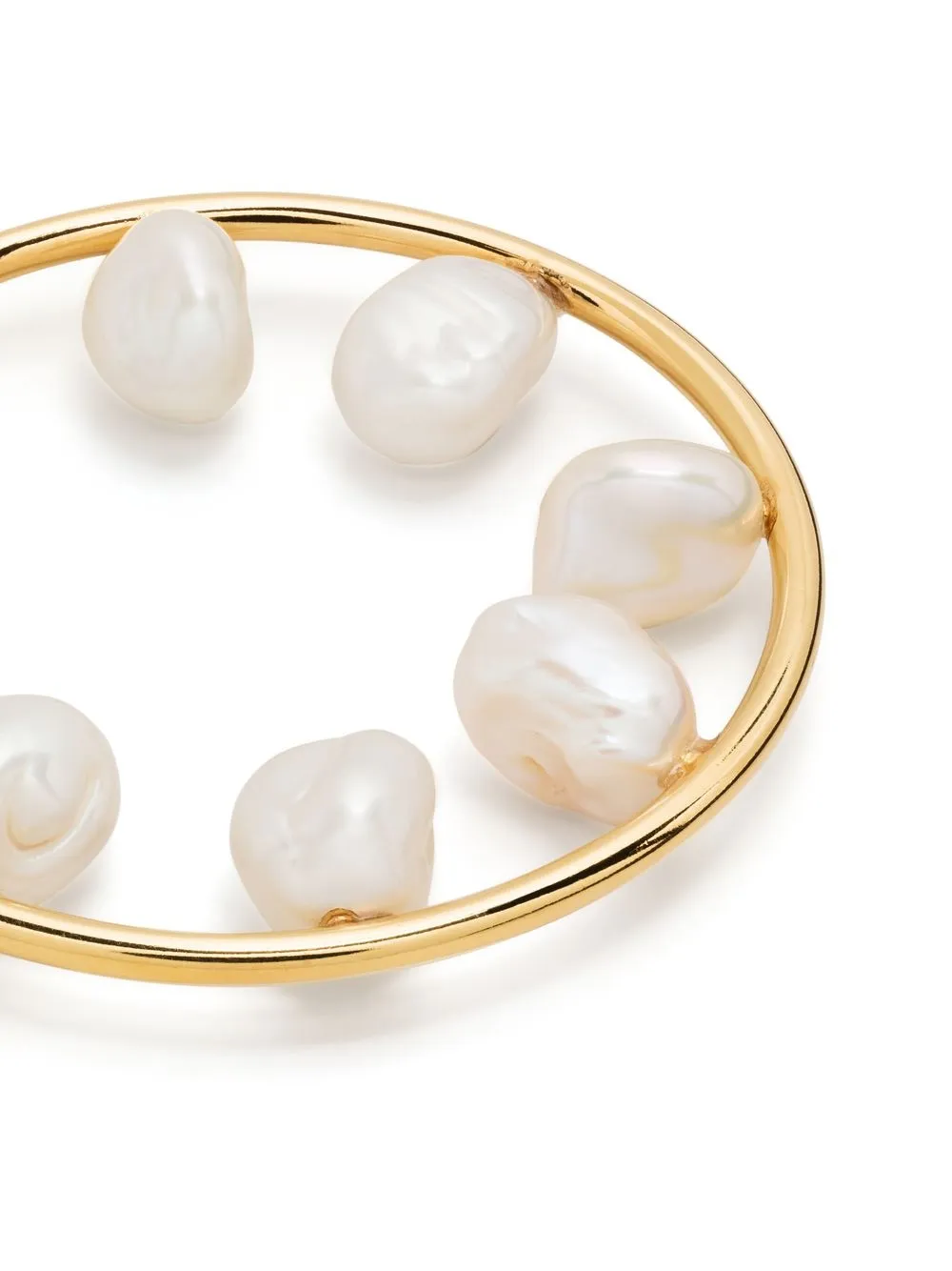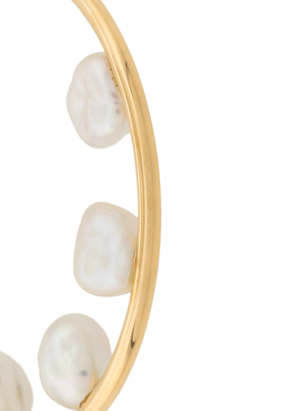 Yellow gold plated sterling silver Baroque Hoop 35 earring from Maria Black featuring a hinge closure and pearl embellishments. This is a single earring.
