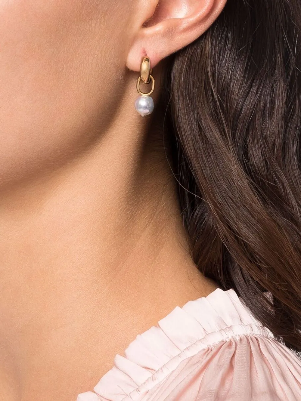 Maria Black’s Blue Mountain huggie earring is designed to add an unexpected burst of freshness to any look. Cast from gold-tone brass, this single earring is finished with an elegant mother of pearl for added elegance.Â