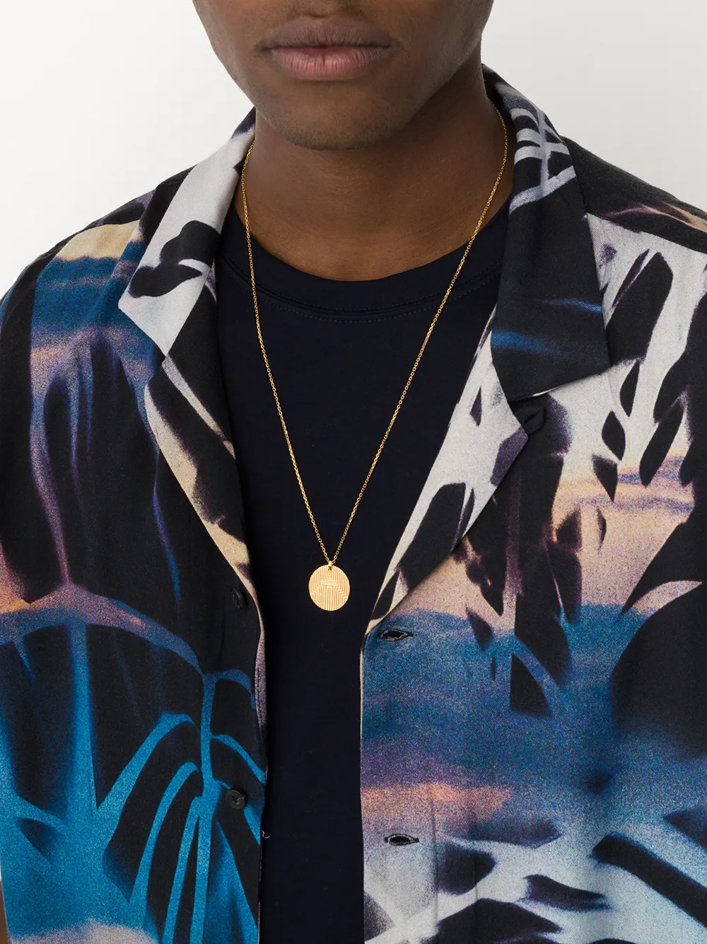 “We can all be heroes in our everyday lives” says jewellery designer, Maria Black. This gold plated rhodium plated sterling silver Boya Medi necklace from Maria Black’s Heroes collection features a delicate chain, a spring-ring fastening and an etched geometric round pendant.