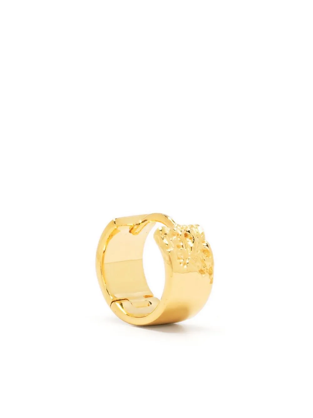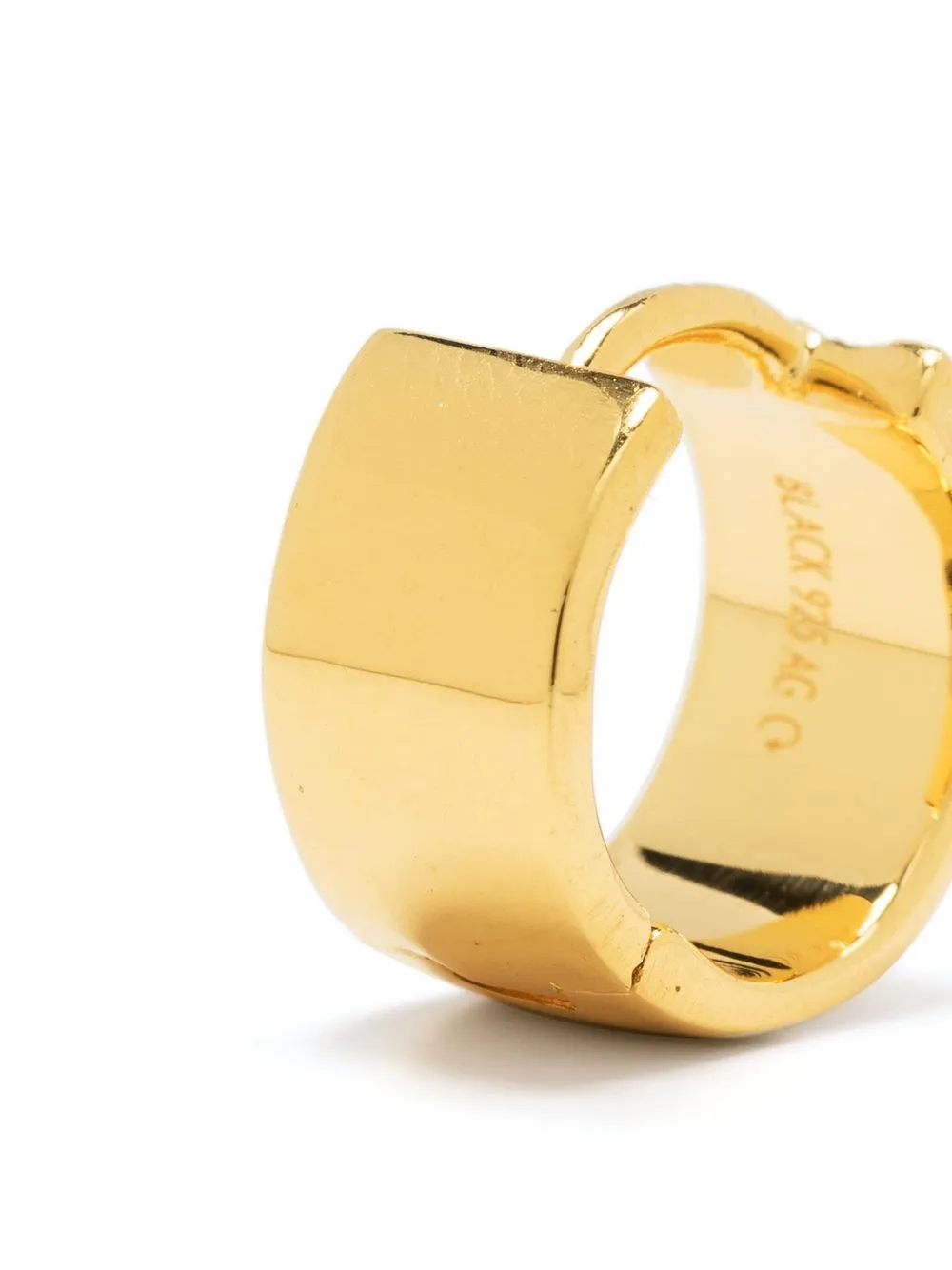 Bridge hoop earring from MARIA BLACK featuring gold plated, sterling silver, engraved logo, small hoop design and for pierced ears. Please consider that this is sold as a single earring..