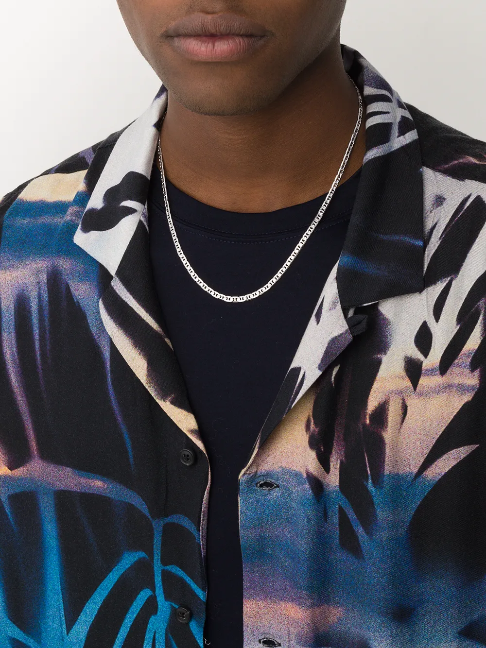 Silver Carlo 50 necklace from Maria Black featuring a long length, a cable chain and a rear hook and eye fastening.