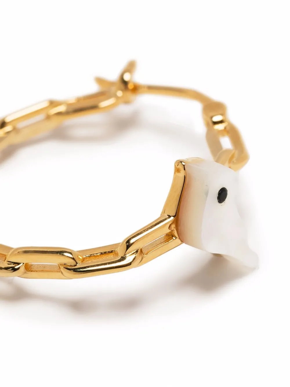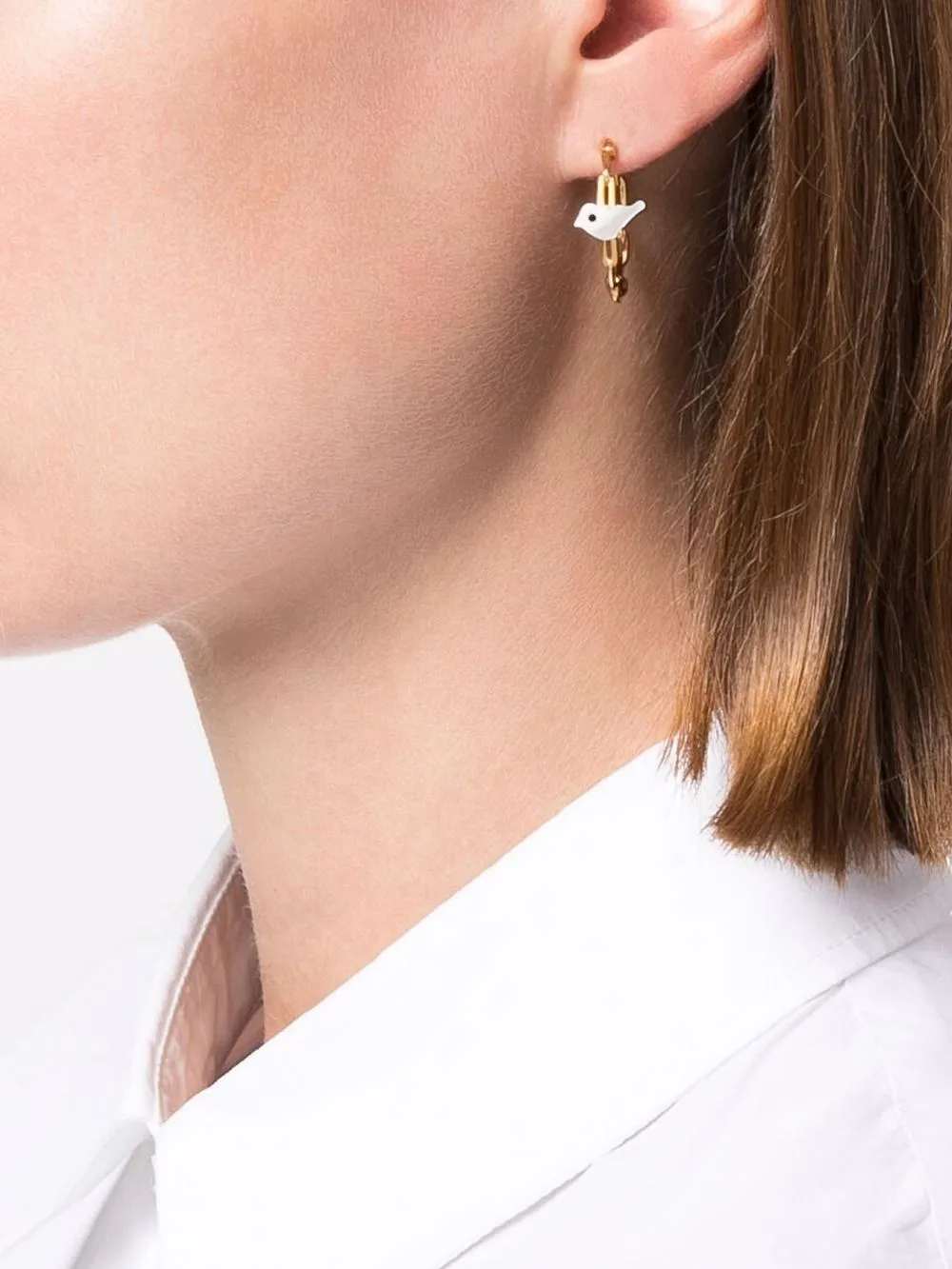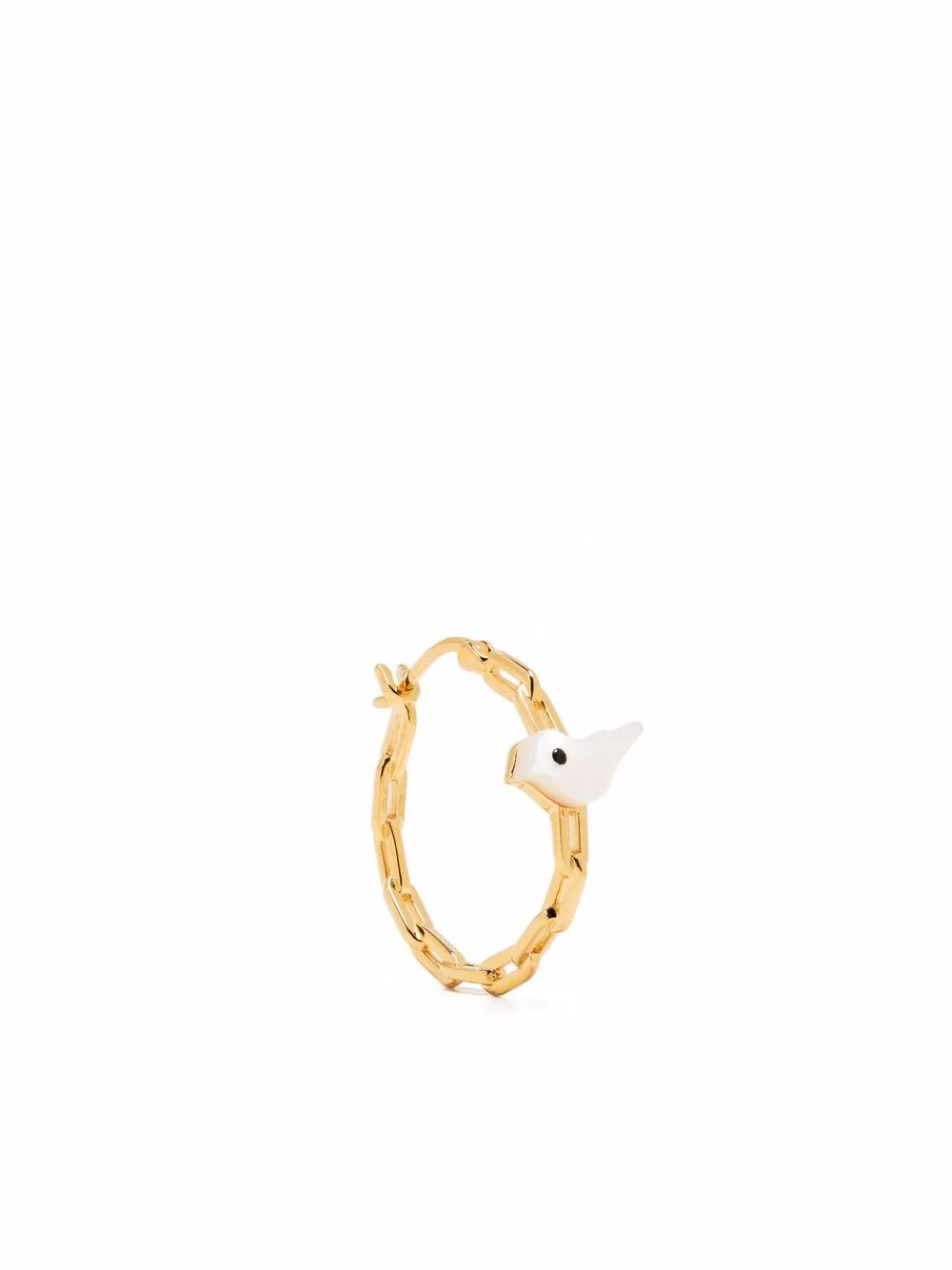 Early Bird Hoop earring from MARIA BLACK featuring gold-tone, brass, chain-link detailing, small hoop design, push-lock fastening and bird charm. Please consider that this is sold as a single earring..