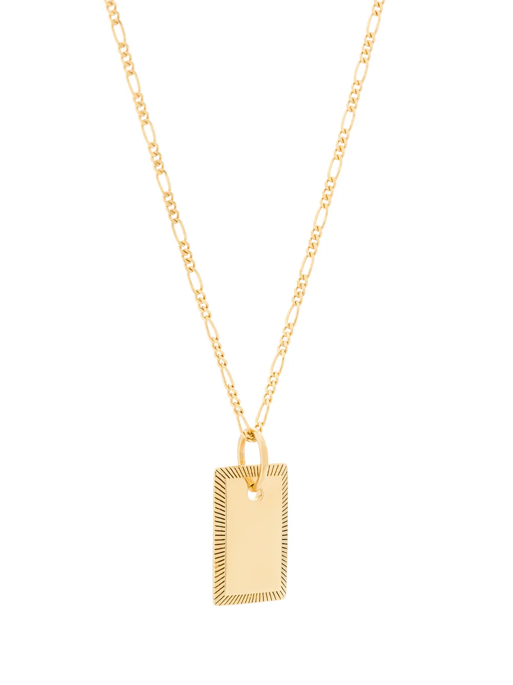 Designed with the courageous in mind, Danish fine jewellery designer, Maria Black presents this androgynous gold plated sterling silver Eliza necklace from her Heroes collection. Featuring a military inspired dog-tag rectangular pendant with etched sides suspended on a long rolo chain with a spring-ring fastening, this victorious necklace can be mixed and matched with others for a layered look.