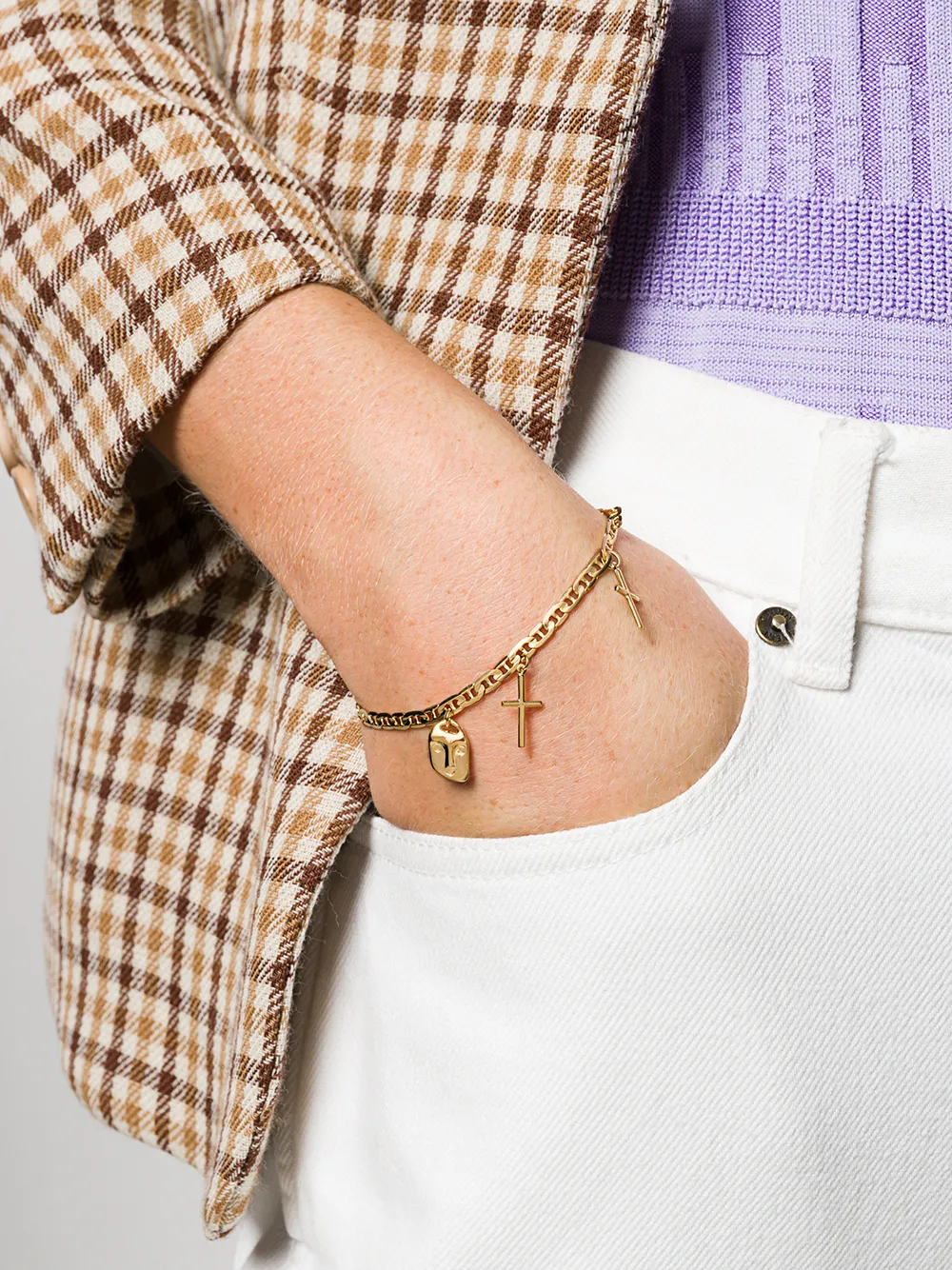 Gold-tone gold plated sterling silver Friend Charm bracelet from Maria Black featuring a lobster clasp closure, a polished finish and charms.
