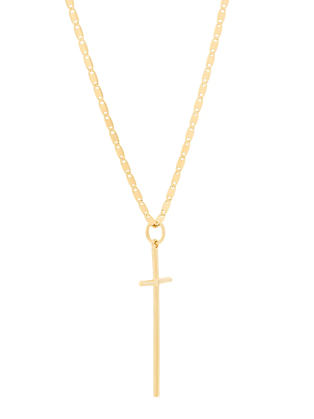 Ecclesiastical symbols continue to dominate jewellery trends and honing the look is Danish jeweller, Maria Black. Fashioned from plated sterling silver, this George necklace from Maria Black’s Heroes collection features a crucifix pendant suspended on a long rolo chain with a spring-ring fastening. This androgynous piece can be worn on its own or mixed and matched for a layered look.