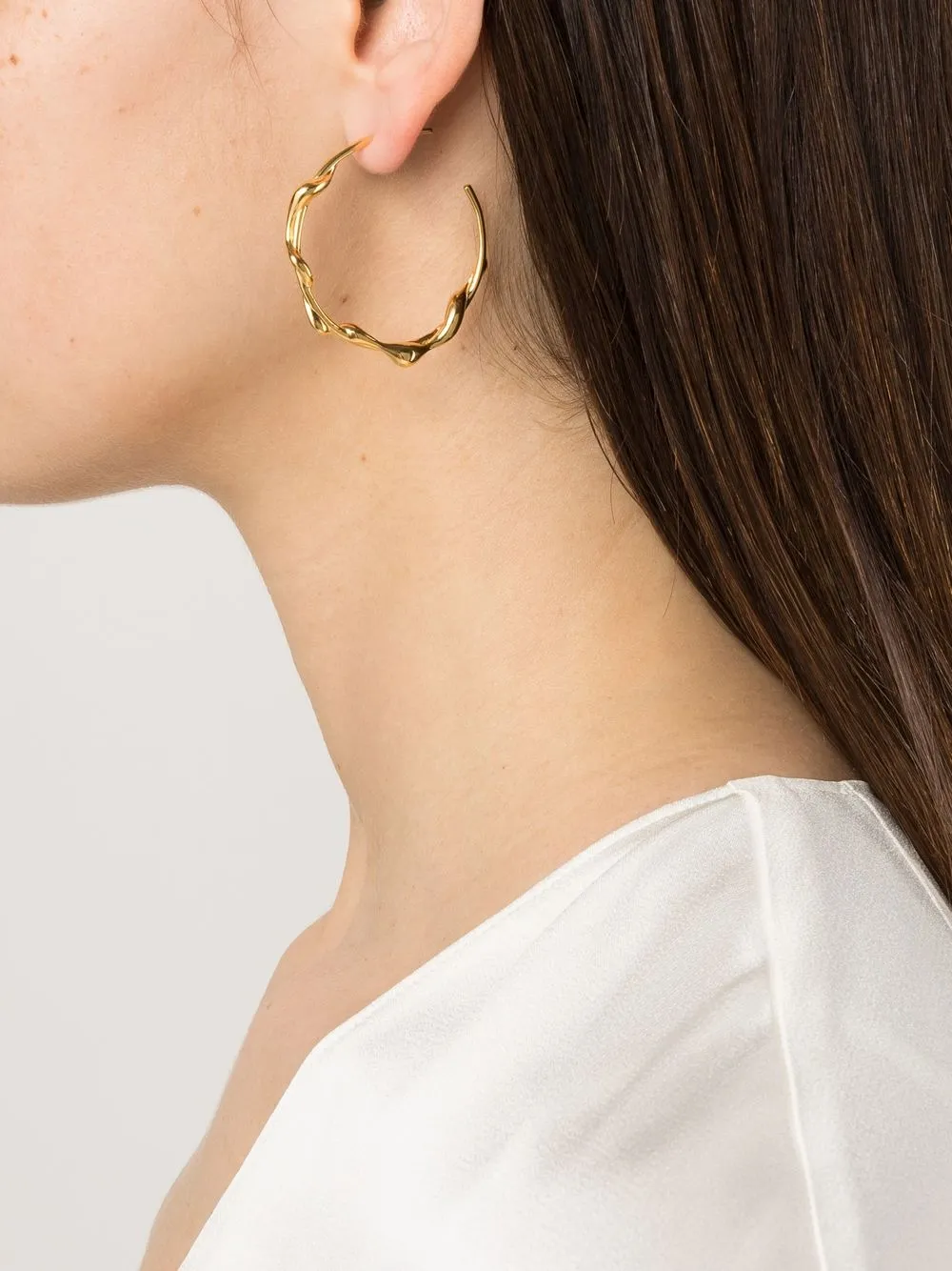 gold Nuri 35 hoop earring from MARIA BLACK featuring yellow gold, sterling silver, gold plated and twisted hoop design. This is a single earring..