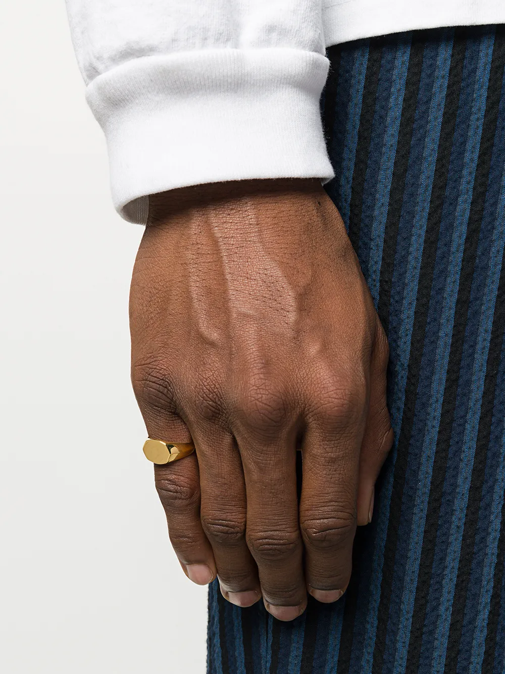 “We can all be heroes in our everyday lives” says jewellery designer, Maria Black. This yellow gold plated sterling silver Gordon ring from Maria Black’s Heroes collection features an internal engraved logo.