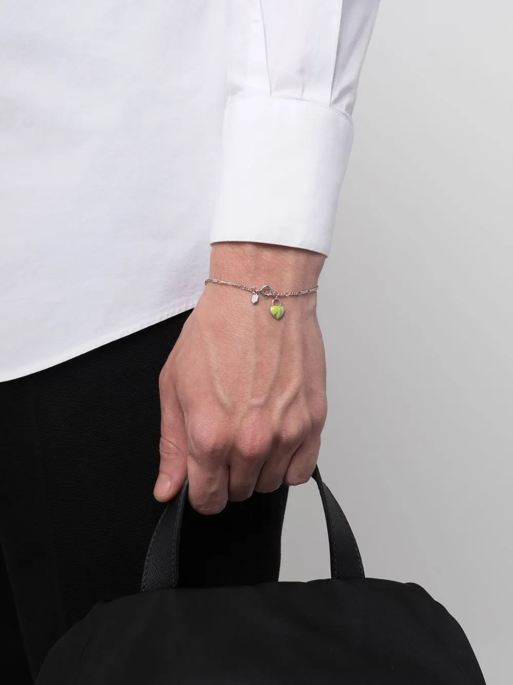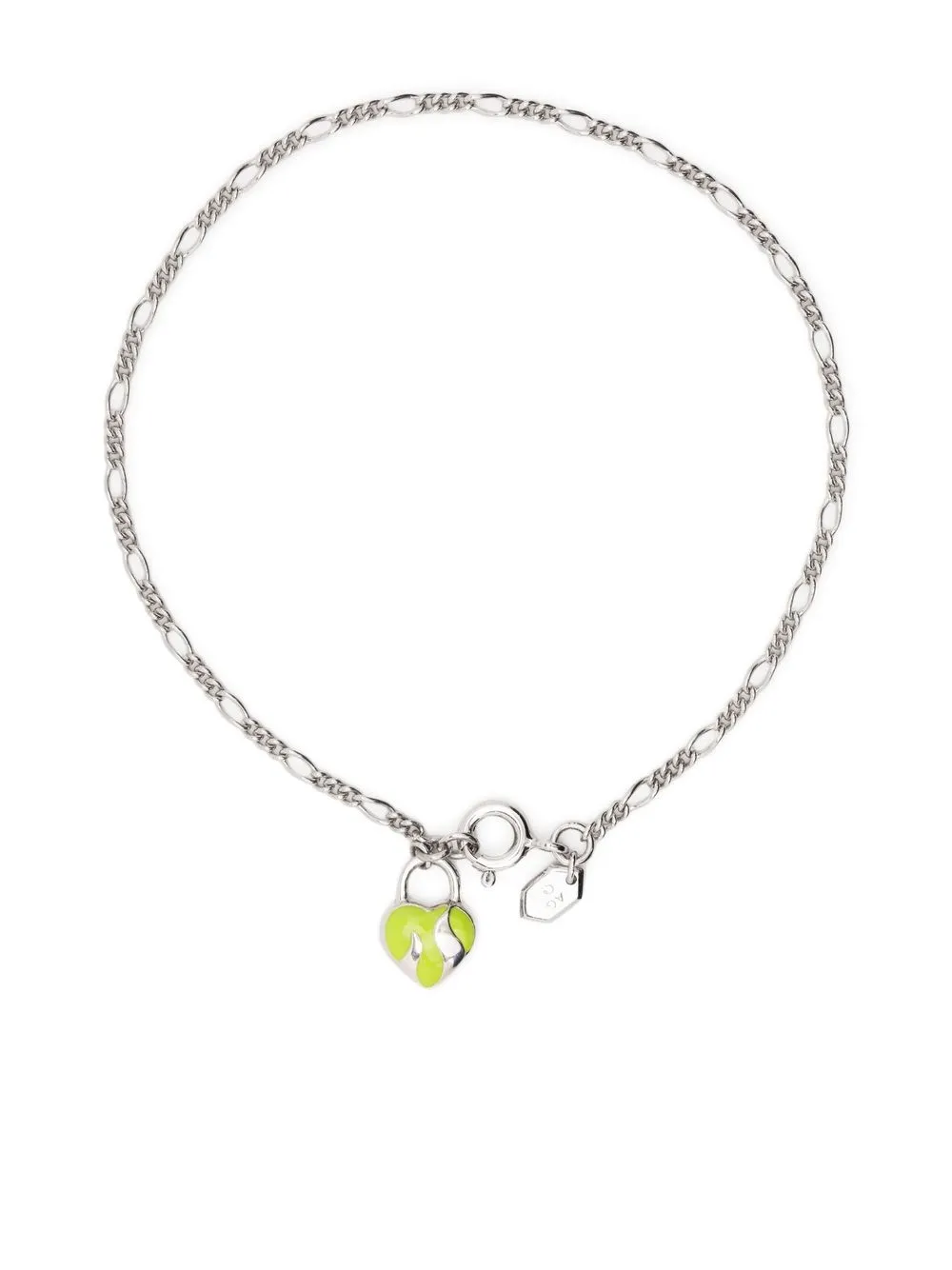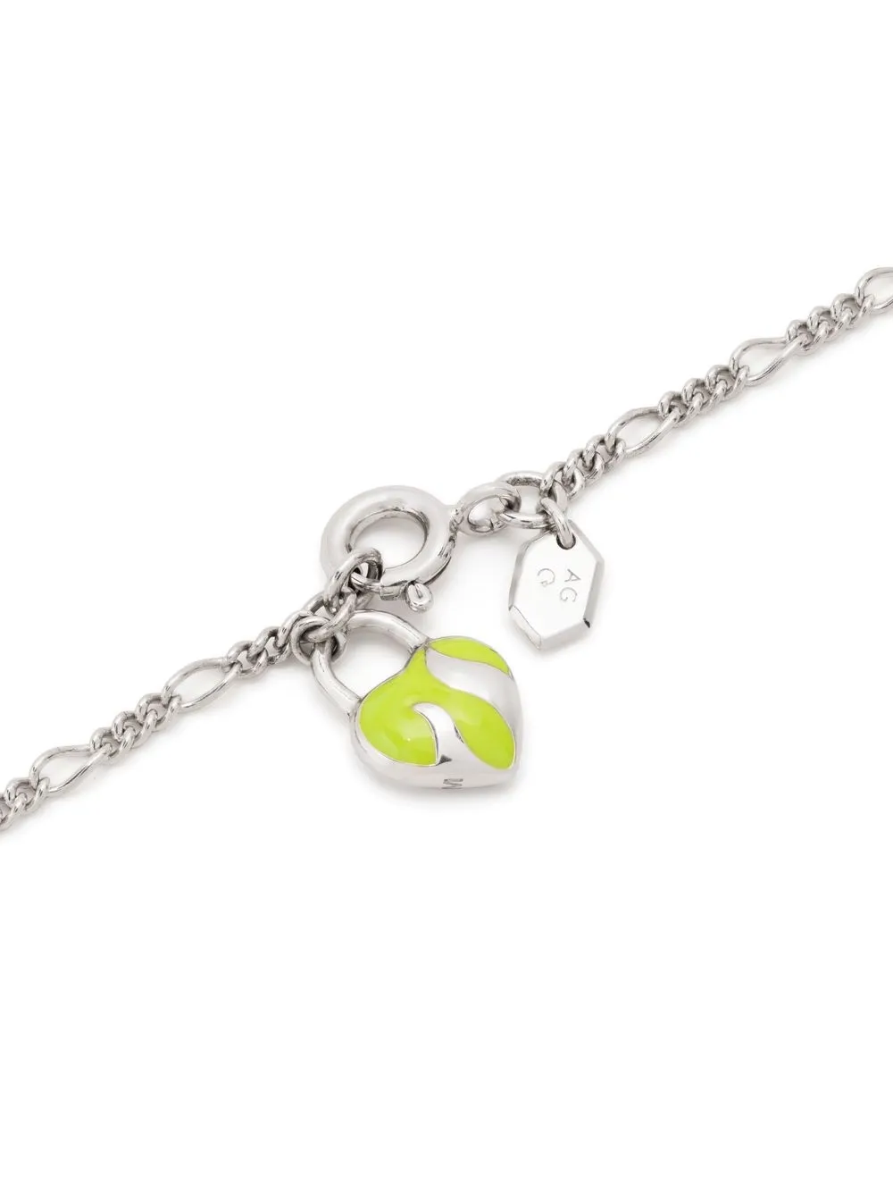 Halo heart-charm braclet from MARIA BLACK featuring silver-tone, lime green, sterling silver, heart charm, delicate chain and clasp fastening.