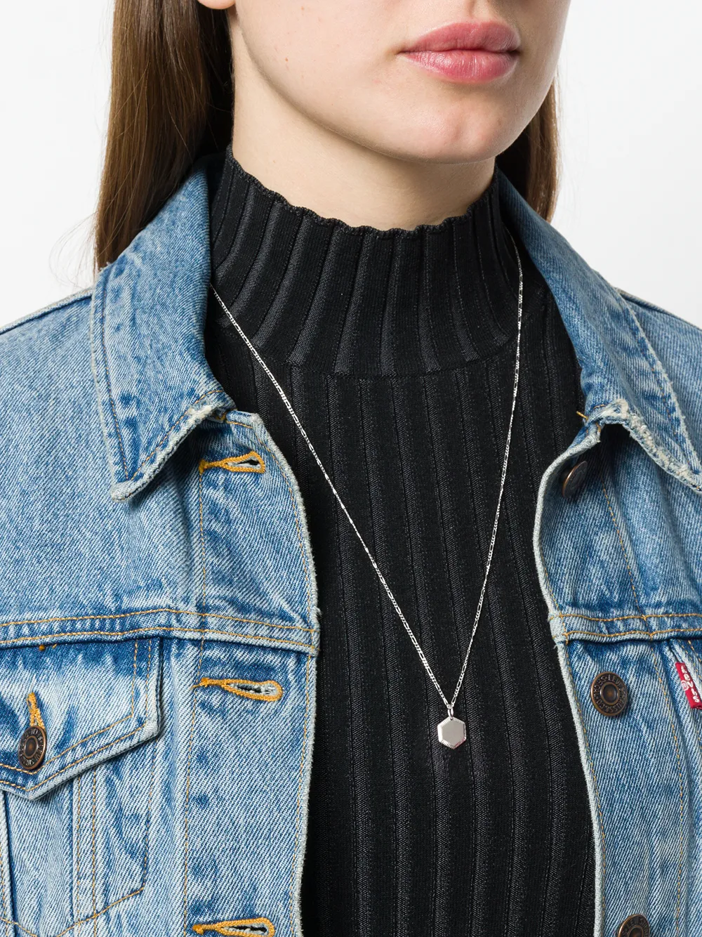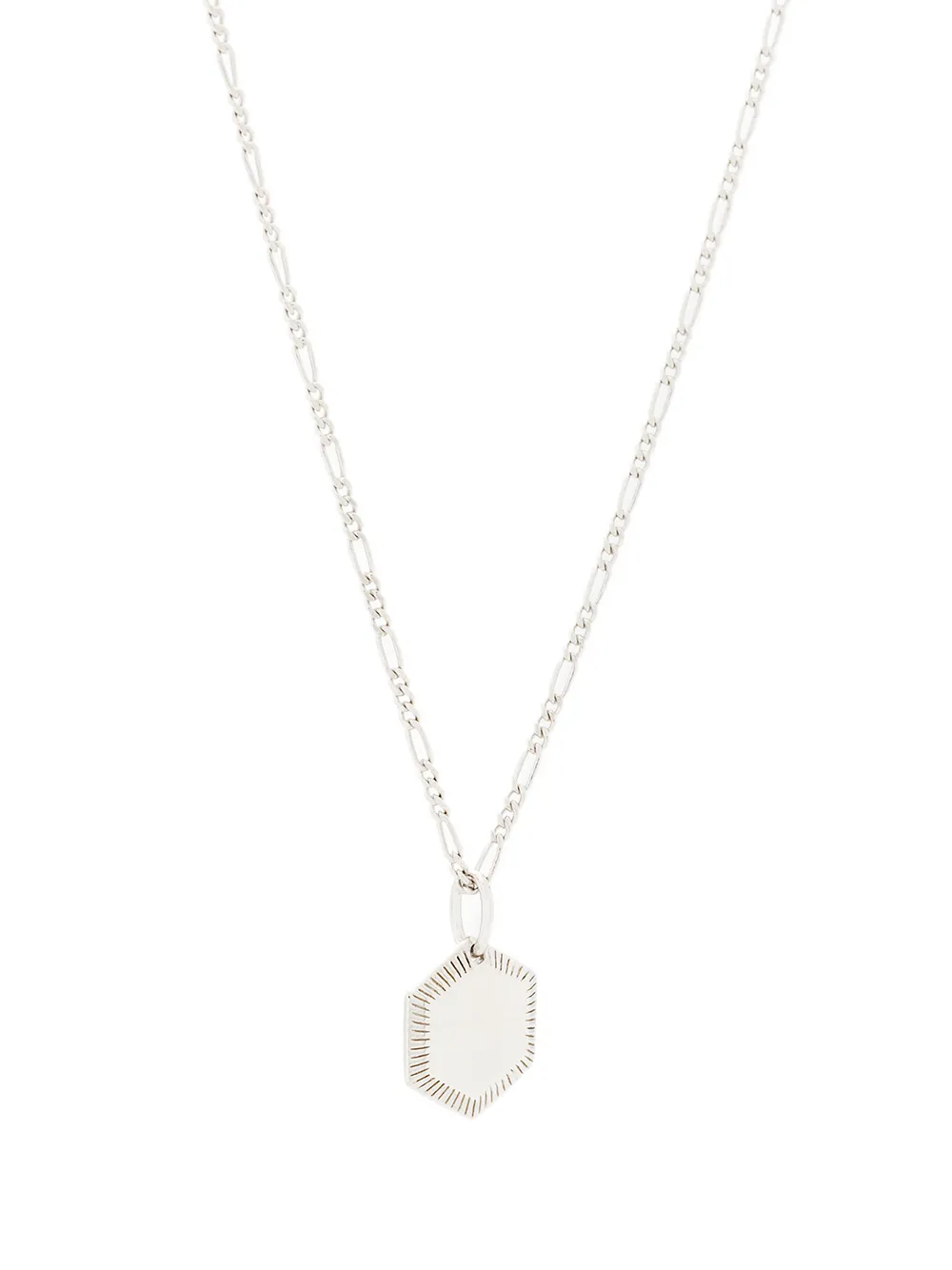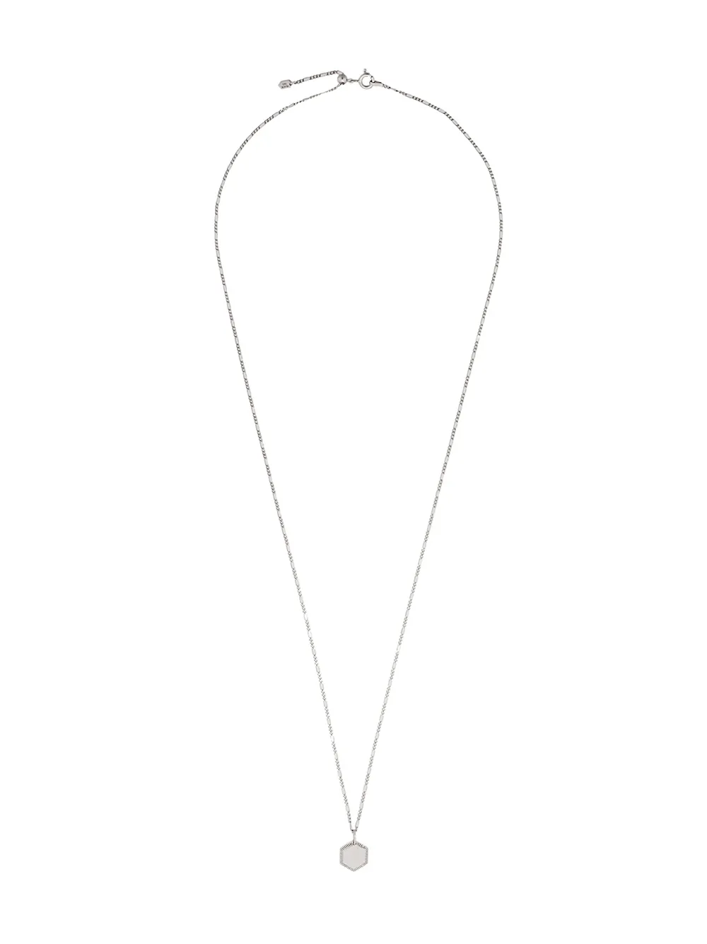 This white rhodium plated sterling silver Kim necklace from Maria Black combines a classic curb chain with spring-ring fastening with a contemporary edge courtesy of its hexagonal shaped pendant with an etched trim. This refined piece can be worn on its own or mixed and matched for a layered look.
