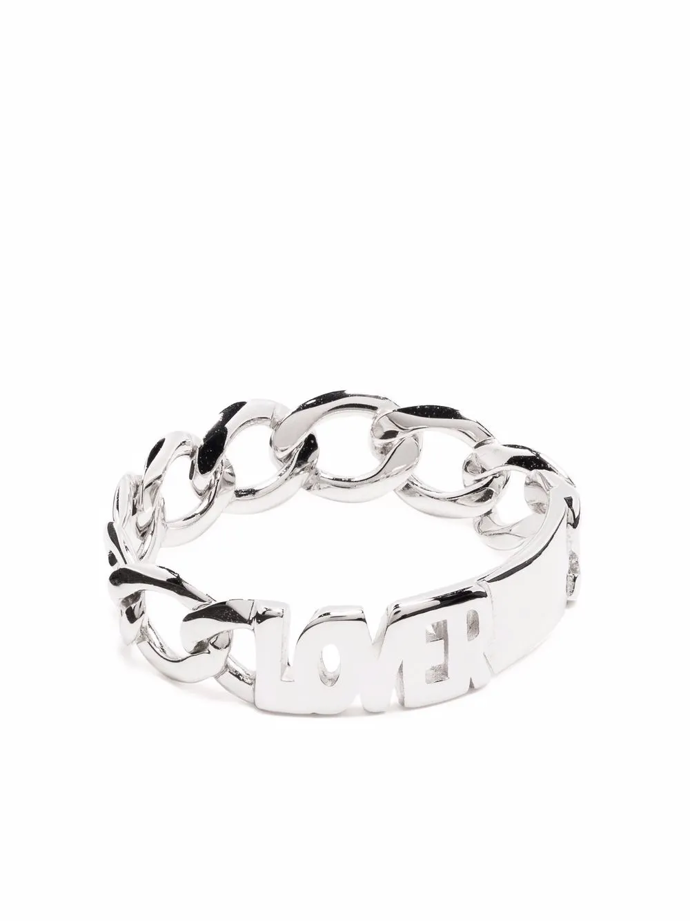 Silver sterling silver Lovers silver ring from MARIA BLACK featuring chain-link detailing and letter charm.