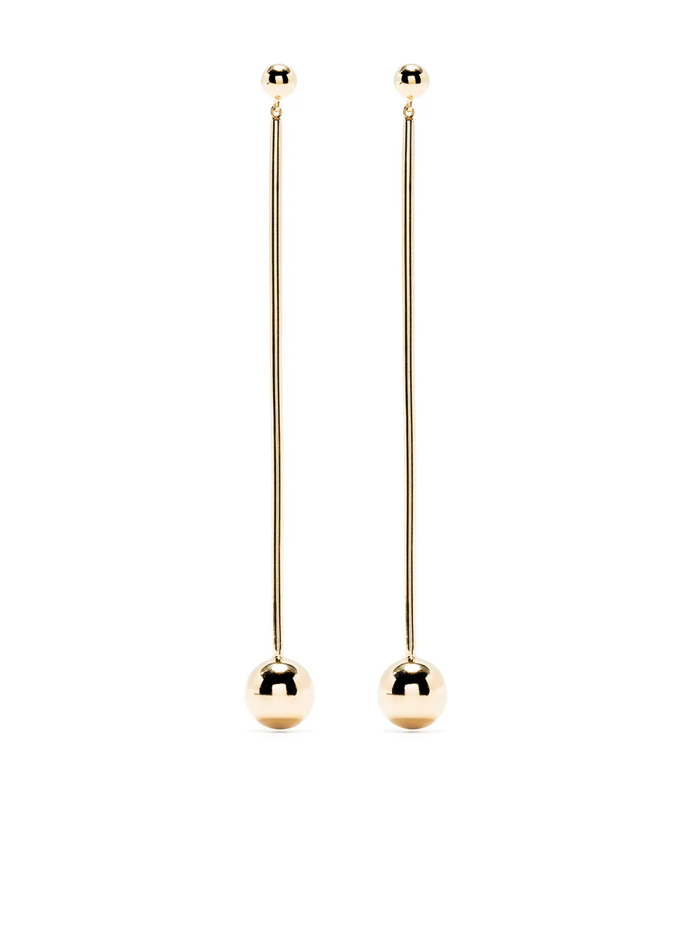 Gold orbit shoulder duster earrings from MARIA BLACK featuring ball ends, stud fastening and shoulder length. Two’s company. These earrings come as a pair..