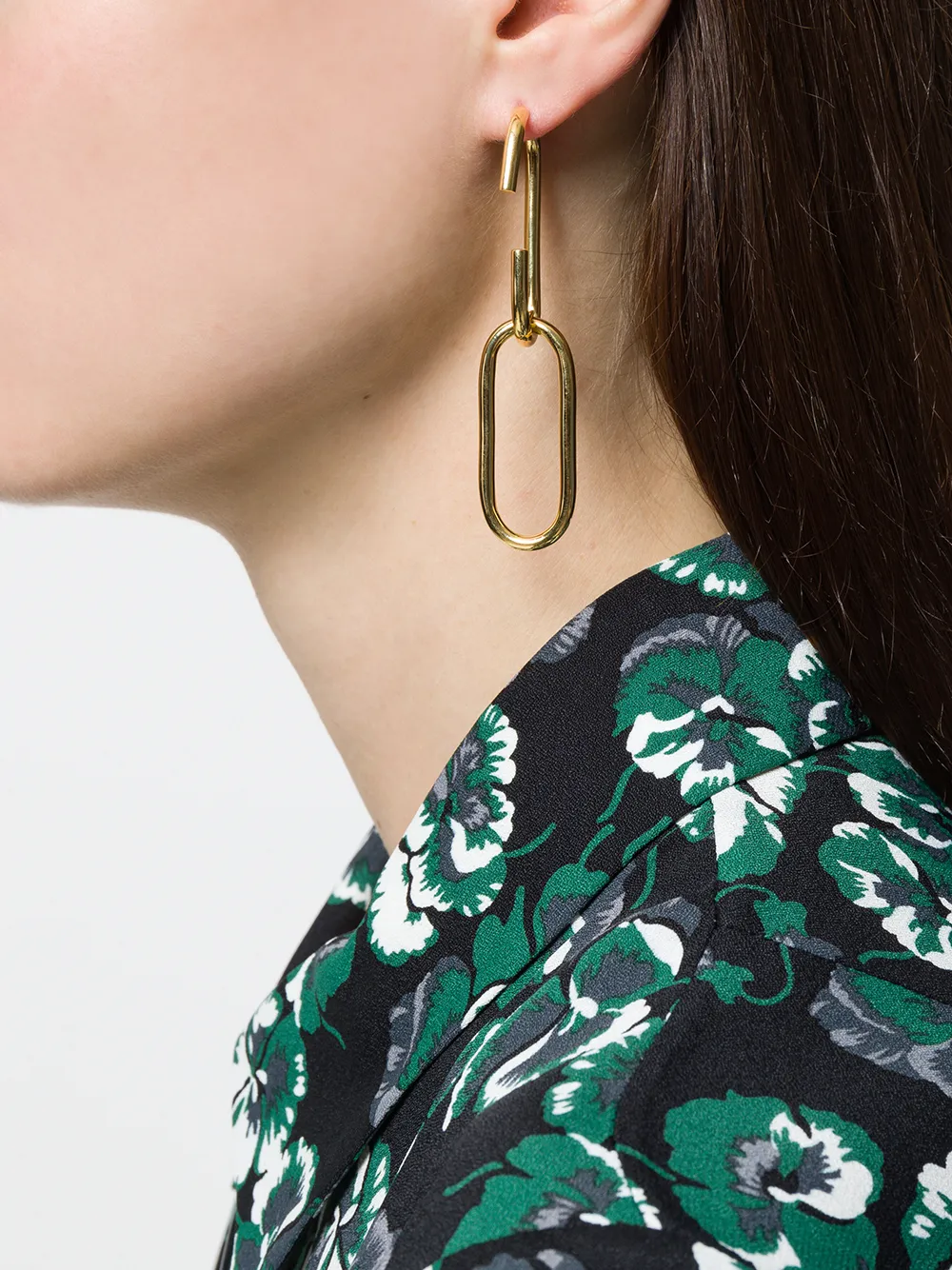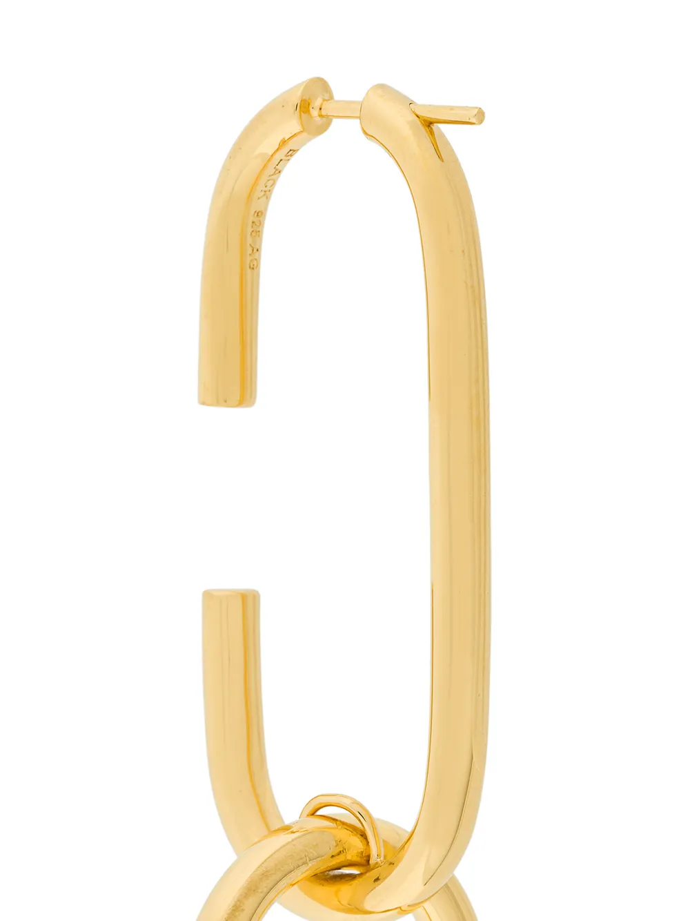 Jewellery designer, Maria Black’s fascination with precious metals and a love of travel is seen in her dramatic designs which draw on cultural elements of body adornment. Triplicate triangles create strong statements, skinny stacking rings evoke delicate fragments and single pierced earrings generate the unexpected illusion of multiple piercings. This yellow gold plated sterling silver Oval Link earring from Maria Black features a bar pin fastening. This is a single earring.