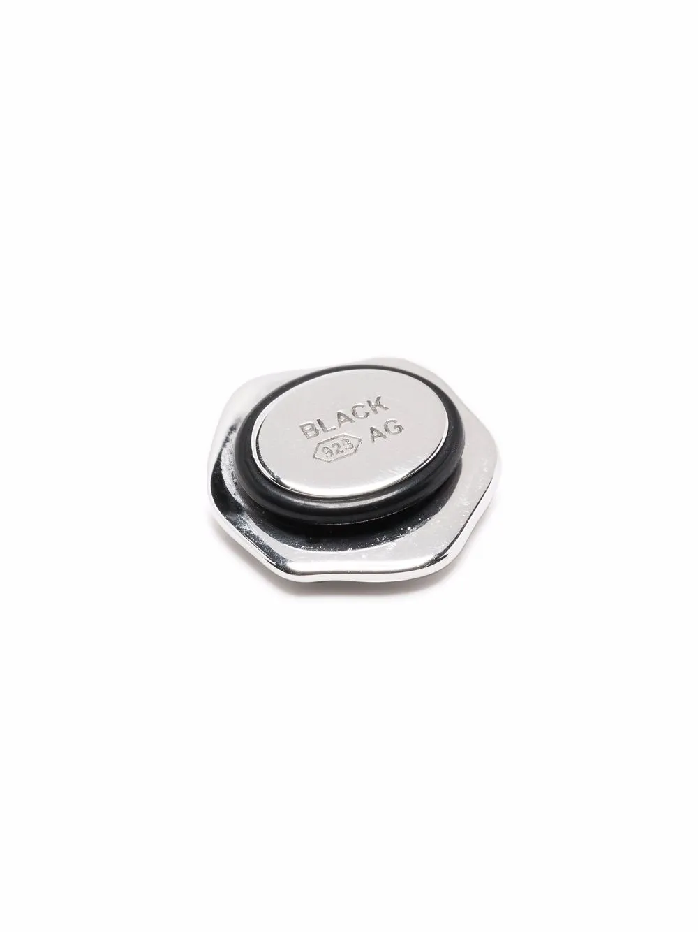 Silver-tone sterling silver POP T coin pendant from MARIA BLACK featuring silver plated, hammered-effect finish and engraved detail.