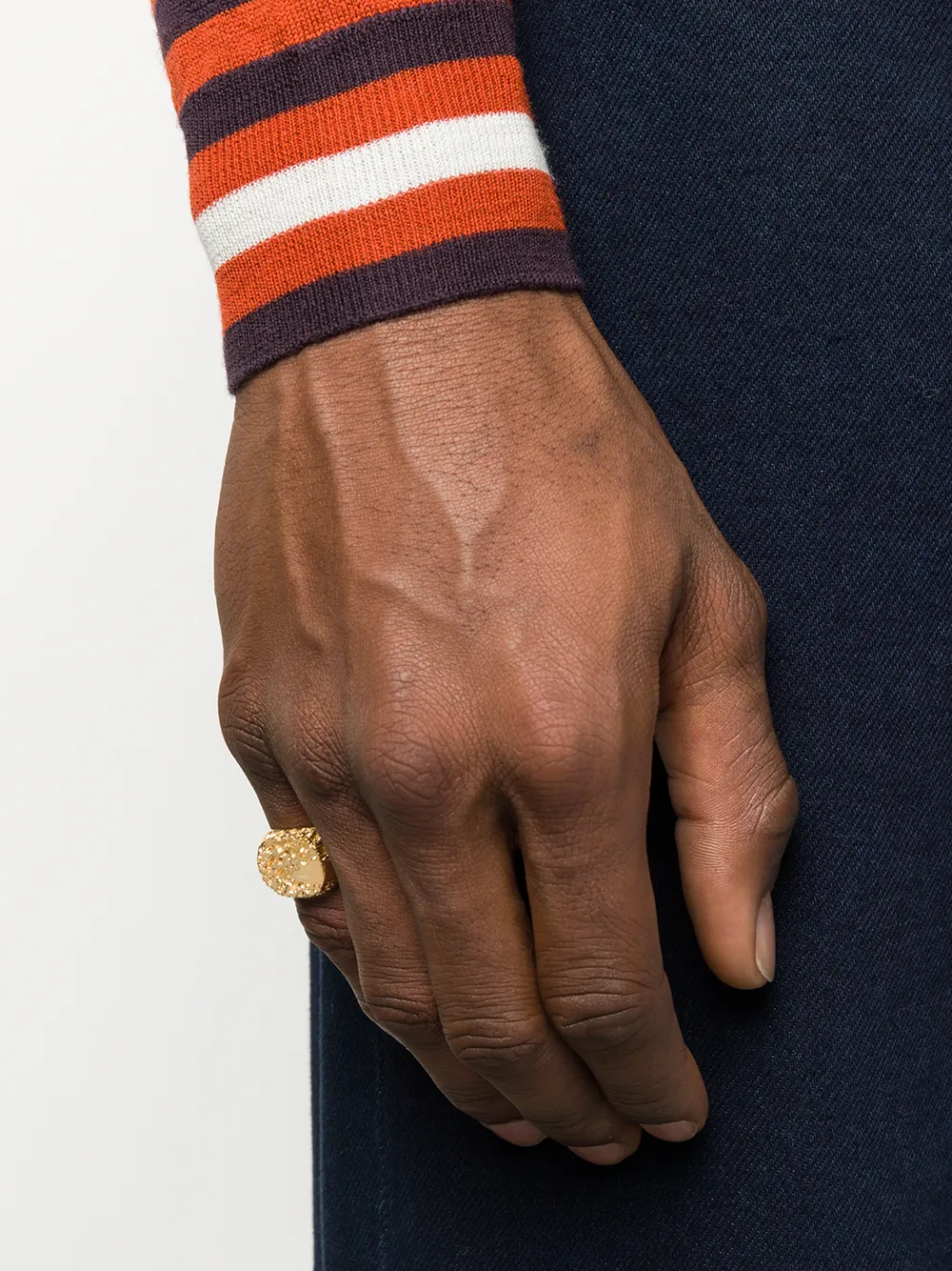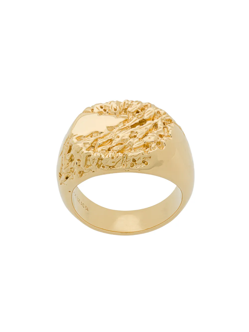 This yellow gold sterling silver Rock signet ring from Maria Black’s Pause collection features a rock-inspired design on a polished finish.
