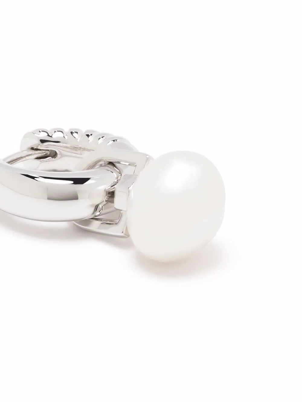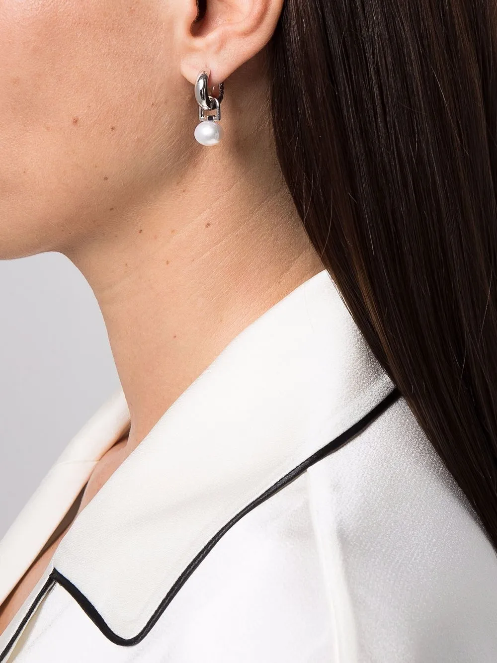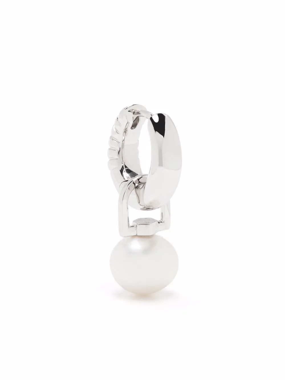 Silver sterling-silver Samba huggie earring from MARIA BLACK featuring freshwater baroque pearl, charm detail, huggie hoop design and single earring.