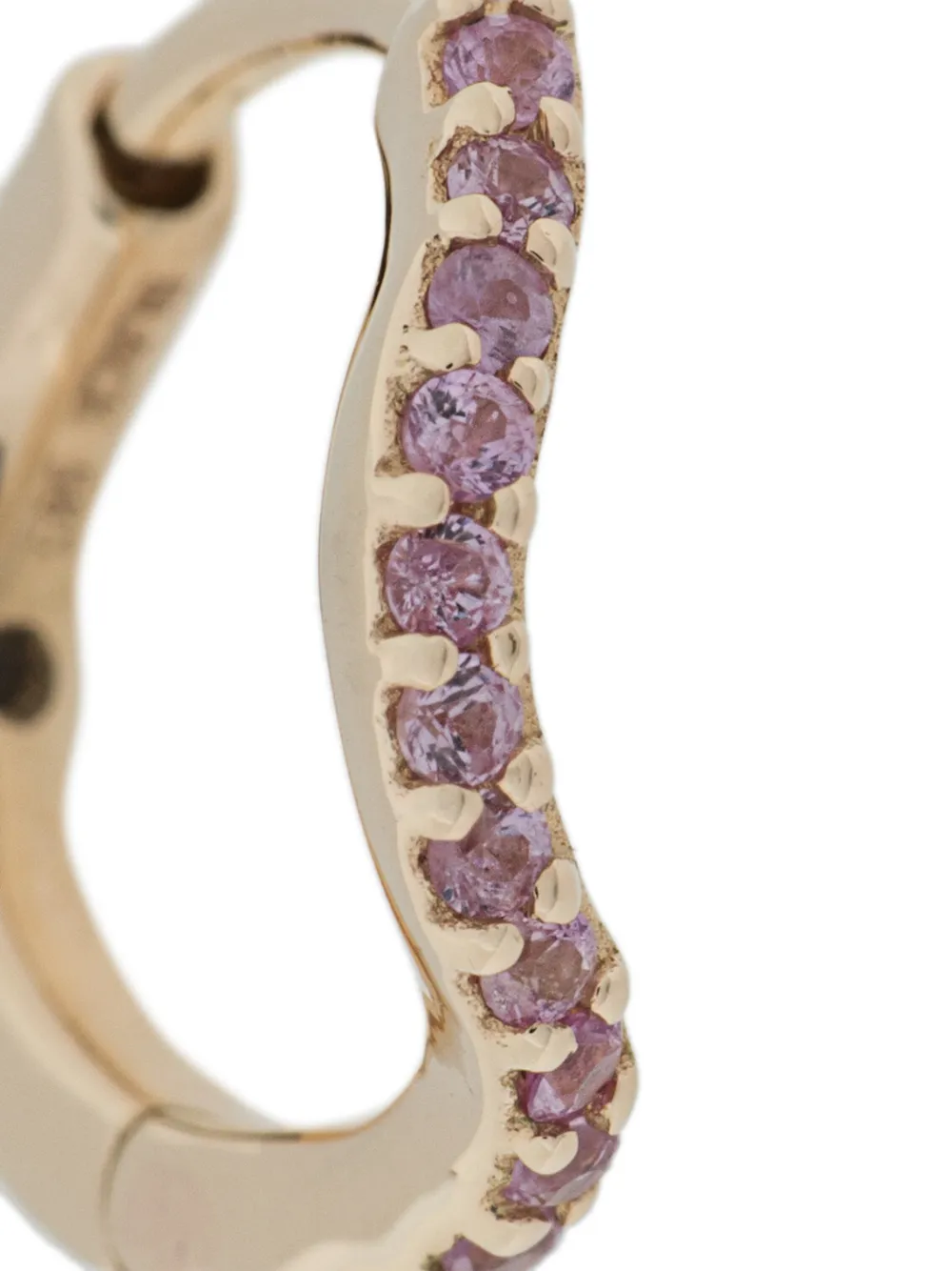 14kt gold Sapphire Wave Huggie earring from Maria Black featuring 12 pink sapphires and 1 white sapphire. This is a single earring.