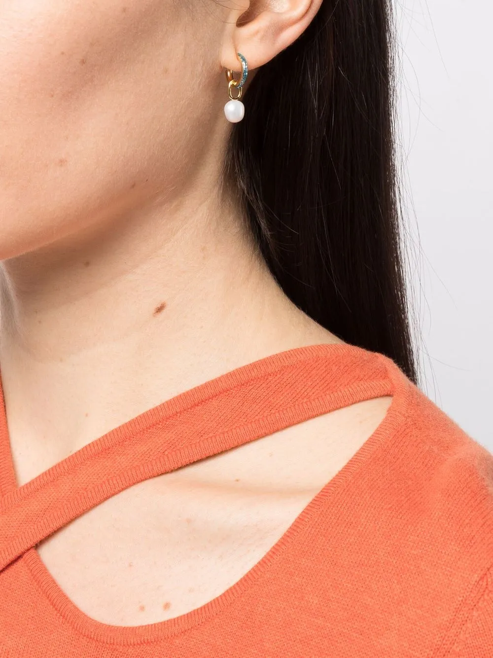 gold plated sterling silver Tequila Ocean Glitter single hoop earring from MARIA BLACK featuring glitter detailing and medium hoop design. Please consider that this is sold as a single earring..