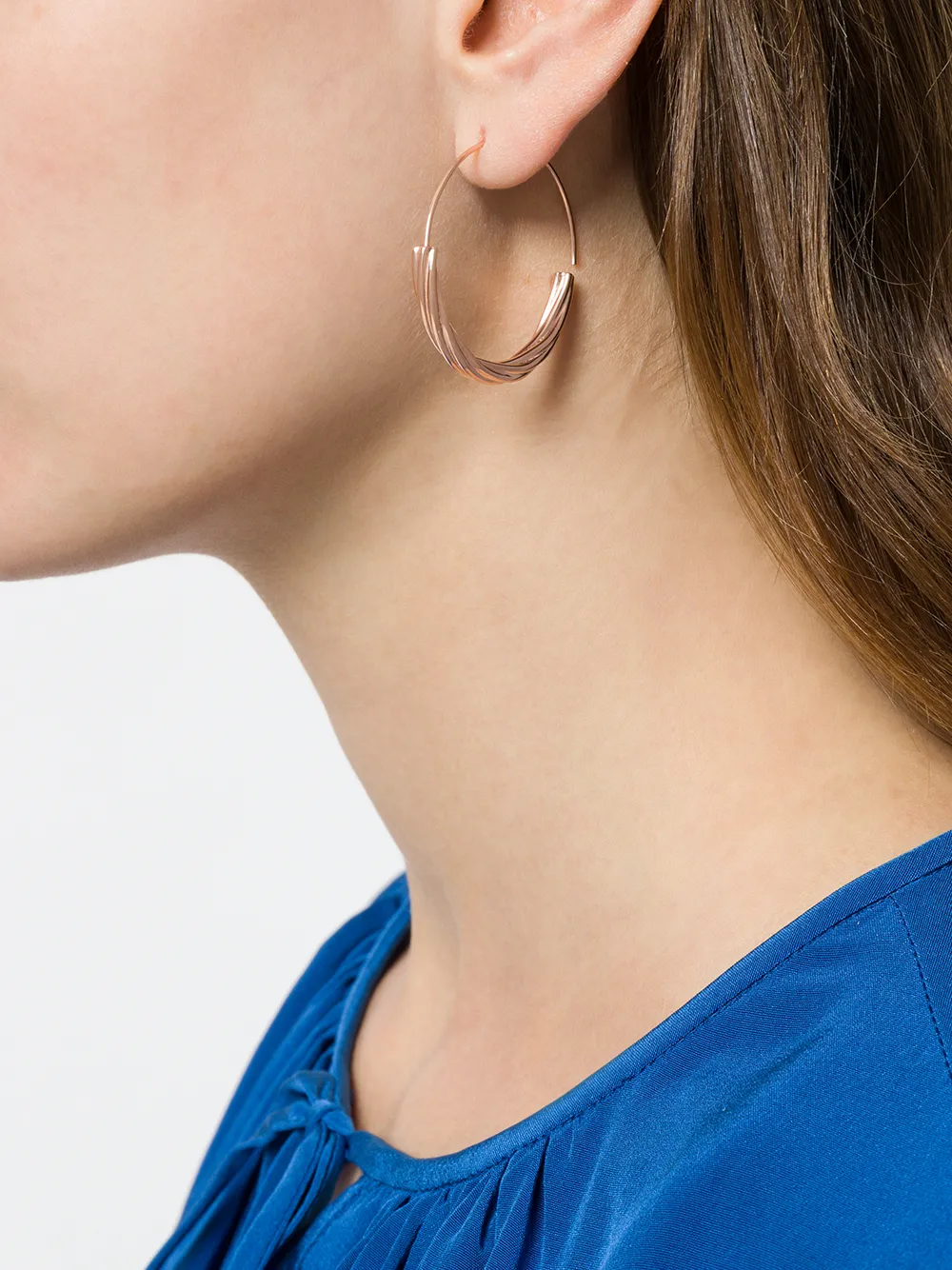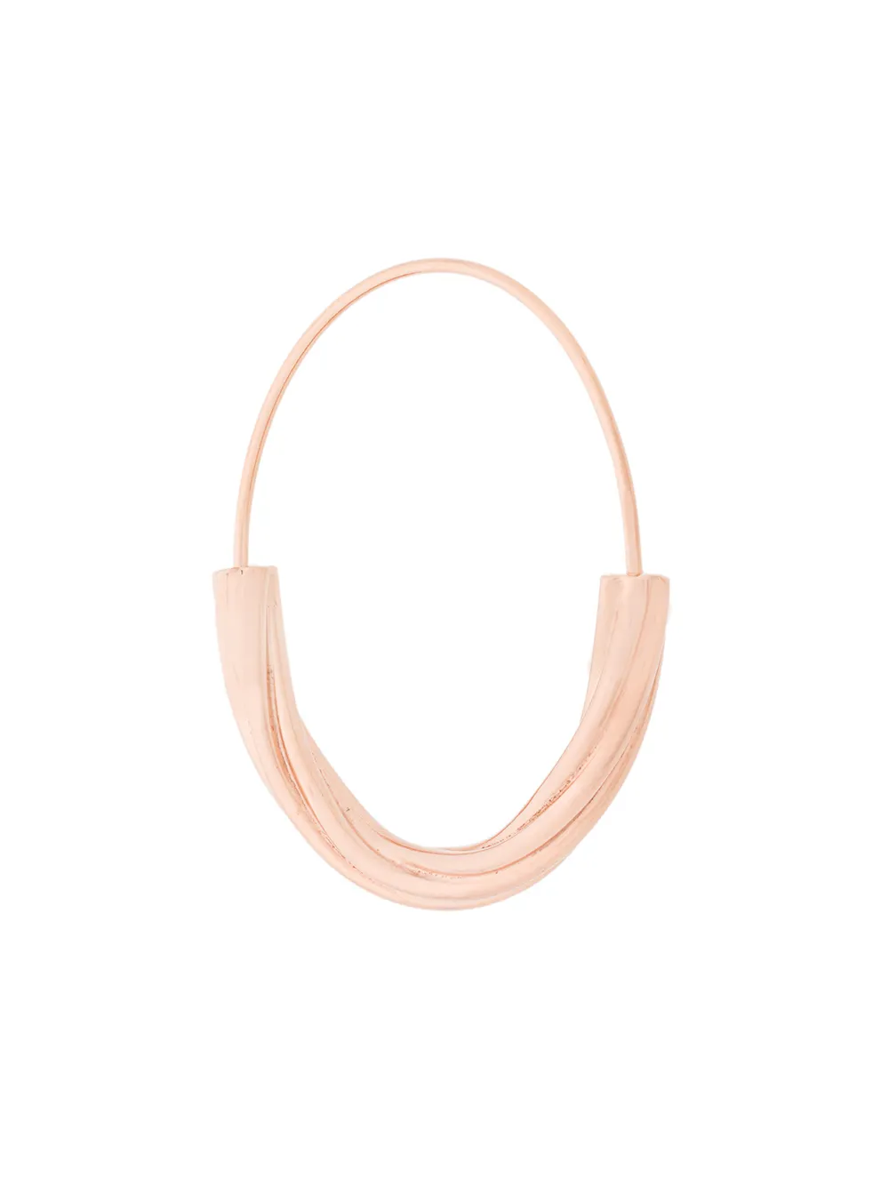 Jewellery designer, Maria Black’s fascination with precious metals and a love of travel is seen in her dramatic designs which draw on cultural elements of body adornment. Triplicate triangles create strong statements, skinny stacking rings evoke delicate fragments and single pierced earrings generate the unexpected illusion of multiple piercings. This rose gold plated sterling silver Tove medium hoop earring from Maria Black features a curved structure and a hook clip fastening. This is a single earring.